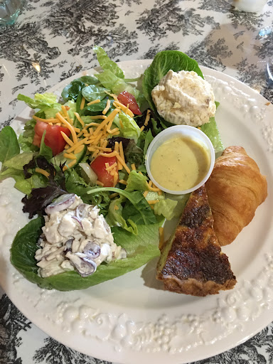 Read moreCharming old building with delightful menu. All of our party of 6 selected the sampler platter which contained chicken salad, quiche, fruit salad, croissant. Desert was wonderful. Chocolate cake with whipped cream and vanilla ice cream topped with a cherry. Another person ordered delicious hummingbird cake. ...