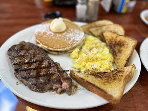 Very poor customer service. My mother and I both ordered the ribeye steak and eggs. Her eggs are scrambled and mine were over medium but more to the over well side. We both ordered our steaks medium and received them close to well done. When I finally saw our server again and she asked if everything was okay I told her no that my steak was overcooked and she walked away and returned with the bill with $9 taking off. She never asked if I would like it recooked. I asked for a small box to take the remainder of the steak home and was told I was not allowed to and if I wanted to she would have to charge me full price. I told her no that was not right I would like to take my steak home even though it was overcooked and she took the bill away and came back with a new amount only charging us for the eggs and pancakes so that we were not able to take the steaks home. After much argument with the cook and the server, the cook came back to our table and said they were going to remake the steaks. This was a good 30-45 minutes after we got our food the first time. We told them that we did not want the steaks remade because we were ready to leave at this point and not happy with the way the service was done. They then brought us another bill a third one and it was the full price of the food with no discounts. At this point we told them that we weren't going to pay for anything because we were not getting the service or the food that we originally ordered and we're not satisfied. The cook then brings out two steaks that she had remade and at this point we were allowed to take those home after having been in the restaurant for an hour and a half. They took care of the bill and said have a good day and they were just having a bad and off day. When I first told the server of the mistake on my food instead of walking away she should have asked if I wanted it remade and taken it back to the kitchen to fix the mistake not walk off and come back with a discount that we did not ask for. All I wanted out of the experience of coming here was to have my food cooked properly and a good atmosphere. None of which I received. I do have to say the pancakes were good, the eggs were overcooked and had bits of eggshell but I was willing to overlook that if my steak had been properly cooked. I will give them a second chance in the future and hopefully it will be a...