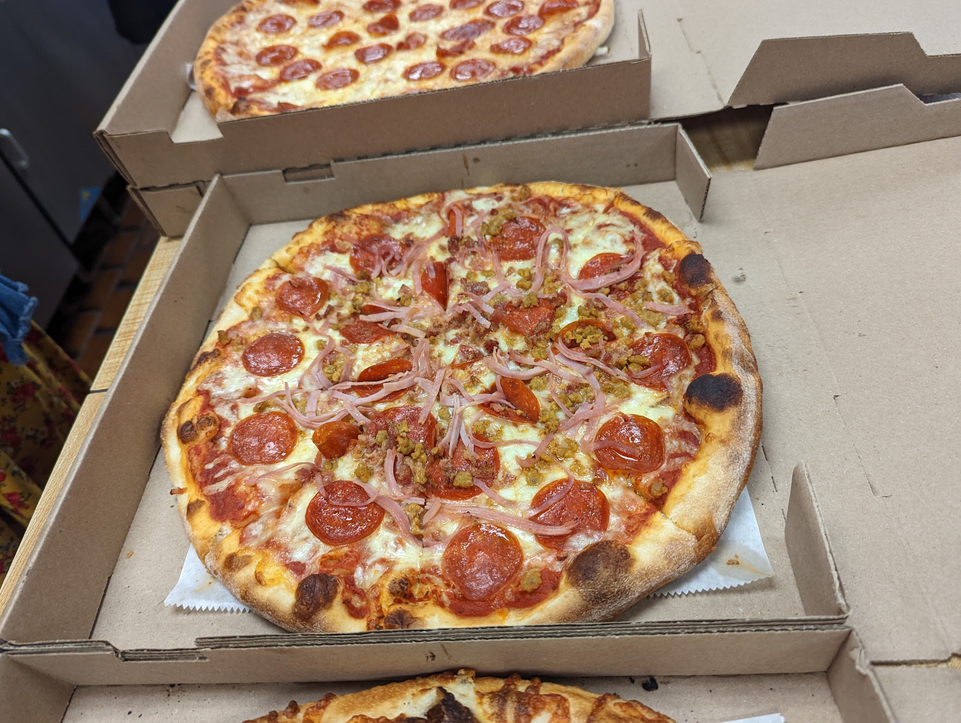 Tried it for the first time today, my girlfriends parents come here all the time & say its great & have heard from some others to give it a try. The Pizza is good & so are the prices for what you get. The dining room was nice and clean, they also have a lot of choices for ice cream. The owners are amazing and nice, I stood around and talked to them for a while about pizza, restaurants and I how I like to travel around try new places & do reviews. Owner let me try one of his peppers & taste his bottle of GABOOM which is a 2 million scoville hot sauce which was delicious which I would have loved on some chicken wings if they had some. We also had bacon cheese fries which come with melted cheese instead of liquid nacho or cheddar. They use the same amount of dough for each size of pizza so if you get a medium it will be a little thicker than the extra large but if you let them know that you would like a thinner medium they can do so! They do something most pizza places don't do which is let you pick and try 4 different specialty pizzas in one XL pizza! 🍕 They also have a Carolina reaper 🌶️ infused pizza that is supposed to be spicy might have to give that a try sometime but I'm looking forward to trying some of them specialty...