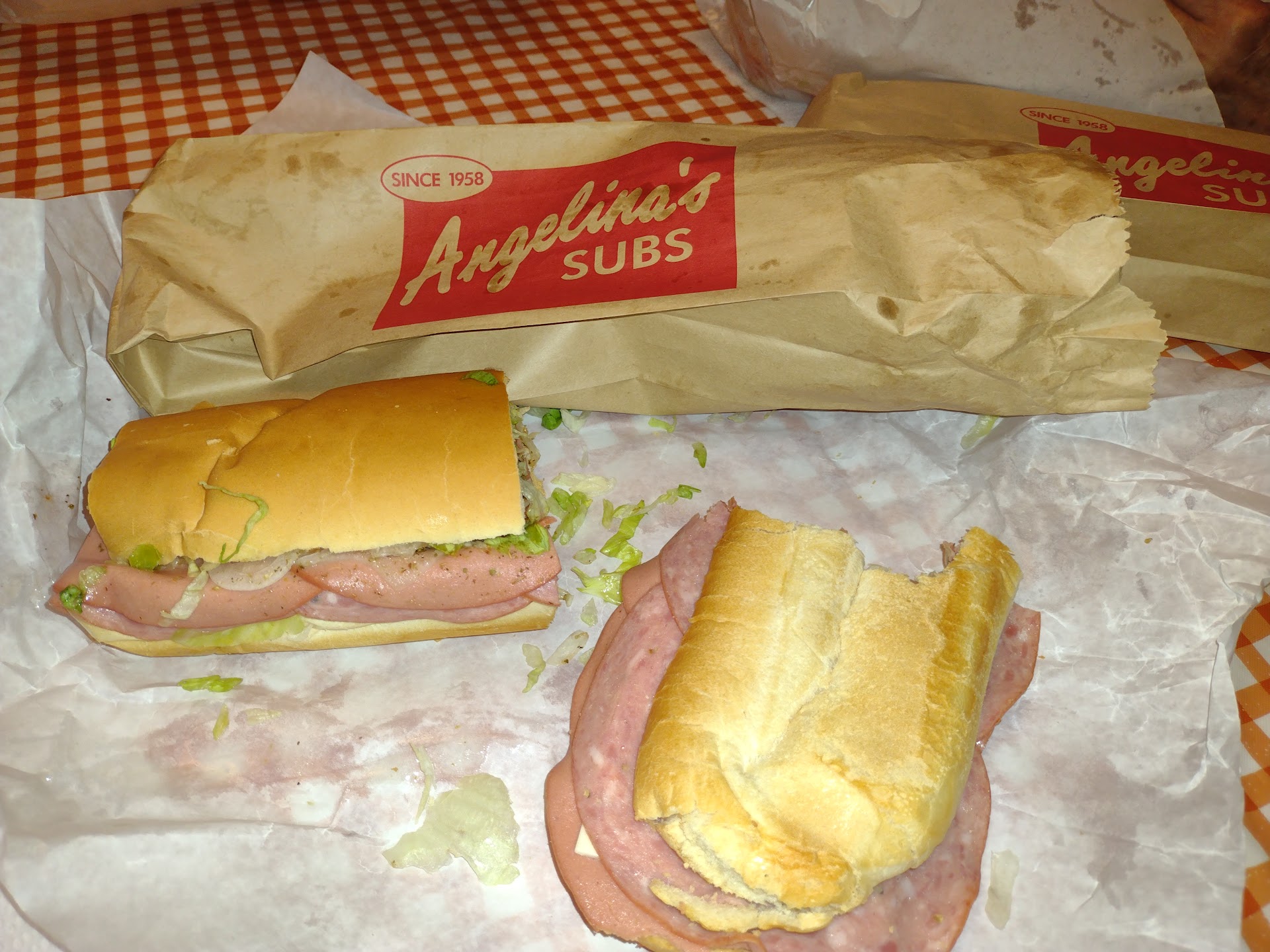 Angelina's has always been one of my favorite places to grab a quick meal for the past 50 yrs. Their cold subs are out of this world..unbeatable!! Simply delicious!! However, I often end up with a problem if I get a hot sandwich..esp. the meatball or hot sausage. I hate when they wrap the meatball or sausage sub with foil. They may think that it keeps the sandwich warm. It really doesn't. But, what the foil does do to a meatball or sausage sub is make the bread slimy..like literally gelatinous and..I find it inedible when it's like this. When I call ahead..I always request no foil but..they often put the foil on anyway. I never complain..I take it home..throw the bread away and..eat my meatballs or sausage with no bread. Years ago, they never used to wrap their hot subs with foil and..I seriously wish they would stop and ask the customer if they want foil or not. Personally, I think the foil ruins a hot sandwich. Kudos to the great cold...