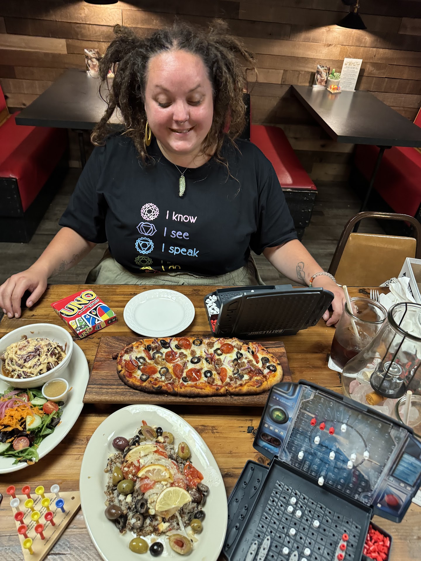 Read more10:10 HIGHLY RECOMMEND. This is such an underutilized space in our community! The owners are so welcoming and the food is fantastic. You can bring your own games (MTG! Or the like), or chose from their wide variety of inhouse boardgames. They don't rush you and you can just enjoy your time with friends and family. More people should be talking about this place. It's a great spot to bring your kids for some one on one time. Or to bring a group of friends. And don't even get me started on the food! Everything was so good I couldn't even get a picture because we polished it off. Did I mention they also...