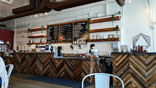 Bright, open, comfortable space for people meeting up in pairs, groups, or working solo. Outlets available along walls under bench seating. Two bathrooms divide the front room from the more dim/ "cozier" room in the back, which offers additional seating in the form of larger, wider tables. Acoustics are decent for the size and height of the ceiling /open brick space. Ironically this cafe has a quiet ambience that makes it great for working on a laptop with headphones on without getting distracted by the typical loud, jarring sounds normally heard at smaller or more common cafes. Music is not too distracting or loud, and features a wide range of genres. I think the staff changed it up manually to mix it up every hour or so. It didn't sound too generic or predictable. Also, the staff here are extremely friendly, knowledgeable, sweet, and cheery, and made suggestions to customers while they ordered. I loved my cold brew and Lorraine Croissant which was heated up. The absolutely gorgeous and enviable "living wall" full of real plants đ at the front is an AWESOME use of vertical wall space. It is always great to see businesses using real plants. I also appreciate the subtle stylish additions like the pretty chandeliers and beautiful metal hand-created signage on the other walls. Metal chairs at the tables near the other side of the cafe are not that comfortable after awhile, but not terrible either. Bathrooms are accessible for all needs and there is a high chair near the bar if you need one for a kid. Parking is tricky as the lots in the front and back can fill up quickly at the start of...