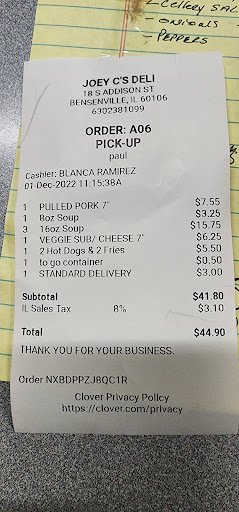 Read moreI love this place for lunch during the week at work. Super affordable, better than Ozzie's, and a lot more options. They've got all kinds of pasta salads and potato salad, like 6 homemade soups everyday and great sandwiches. Their chicken noodle and vegetable soups are my favorite. I love that they have a hot and mild giardiniera option, bc I love it but I don't like too spicy. Customer service here is top notch, and they even deliver. They are a family owned deli and everyone here is super nice. I recommend calling ahead to place your order, or you may have to wait a few minutes for it to be ready. They are very accommodating for my super specific order. I definitely recommend...