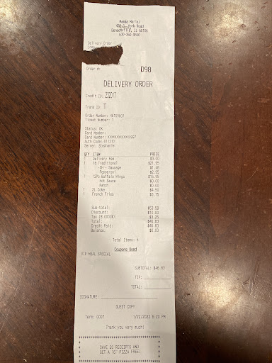 Read moreOne star for horrible customer service. We’ve been ordering from here since we moved to the area in 2015 and never had an issue til tonight. Placed an order using a coupon they emailed to us on January 14, 2022. Coupon was for an 18” cheese pizza, 12 wings, and a 2 L coke. $25.98. I added two toppings and an order of fries. When I paid with tip it came out to $55. Didn’t think much of it til after dinner and looked at the receipt. They charged me for everything separate and just deducted $10. Which is no where near $25.98. I called to complain about the difference in prices and the manager gets on the phone and tells me that their prices have increased and I should understand. I tell him that’s not my problem as the coupon was sent to me one week prior. So if their prices changed then they should of reflected that. Nope. He says they haven’t been updated yet expect me to have no problem paying the difference. I say if that’s how he’s going to run his business I’m just going to contact my credit card company and cancel the transaction as I’m being overcharged. He tries to tell me I should understand their costs have gone up and so have their prices. I tell him he should understand that’s not my problem. Don’t send coupons that aren’t going to be honored. He says he’ll just void the transaction and have his driver come pick up the food. I tell him to send his driver. He shows up fifteen minutes later and takes with him the leftover pizza, wings, fries, and coke. Suffice to say they lost a customer whose being going there for the past seven years.