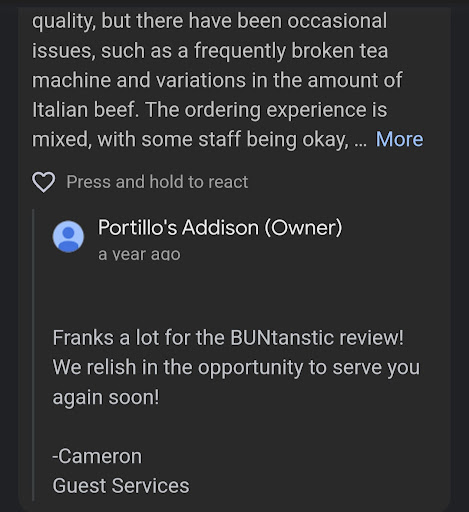 When I went to write a new review for Portilloās Hot Dogs, I noticed I had already left one before. Iām posting that original review again below, along with the photos. Just look at how they responded to my message from beforeātake a look...