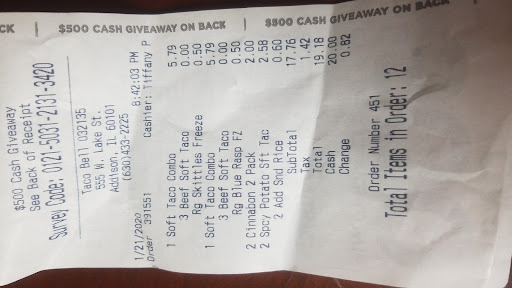 Read moreFirst off. Taco bell is my favorite restaurant that offers a variety of vegetarian dishes. I ordered 2 spicy potato tacos with rice added on each. The menu stated $1.00 each. It wrung up $1.29 each. I explained over the intercom that the menu price differs from the screen price. Tiffany advised that her manager said the price changed and there wasn't anything they could do about it. I mentioned that when the price of changes the menu price should change as well. You simply don't change one without the other. Once receiving our order. 2 beef tacos had no meat and 1 potato taco had no potatoes. This prank is unacceptable. So for me correcting a isuue goes to show that this particular staff or person doesn't respect the franchise first and the franchise customers thoughts second. I feel very disrespected for speaking my opinion. If time prevailed i would of returned to the location and asked for a...