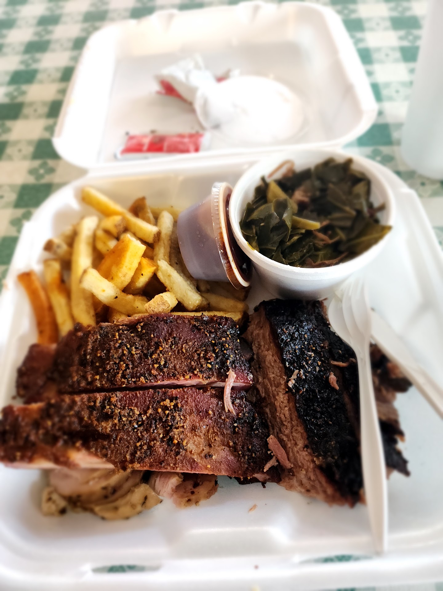 Ā Ā Ā Read moreAddison has a new hidden jewel Austin Bar-B-Que. While Addison is known for its many restaurants it is not exactly known for good barbecue but if Austin barbecue stays committed and true to what I ate to day that's all about to change. The food was great! I normally don't give too many greats when talking about barbecue. I am a foodie and a Texas girl cornbread and catfish fed. So my quest for good barbecue is a serious one. I believe they had a soft opening a couple of days ago the server said And this was the 1st weekend they were open. 1st impression charming and welcoming outside. When I enter there was a great smell of ya'll know this is important because if a barbecue restaurant don't have "that smell" I'm walking right back out..Lol! I was welcome and given a nice review of options for dining table seating, bar seating or carry out. I chose a to meet plate Smoked Turkey and pork ribs with 2 sides fried okra (not greasy) in black eyed pea salad, Which Was kind of like a Texas caviar but not. It's one of their own signature side dishes and It was very good. The ribs pulled right off the bone they didn't appear to be parboiled then smoked (which I hate, in Texas that's like beans in chili...nooooo) and yes I can tell the difference. The Turkey was smoked in moist really good. I was provided to sauces spicy regular the regular was good however the spicy was a Ted bit vinegarish to me. I know this review is long but I really wanted to write a good true review I get tired of Google in and all I see a shout outs or shout downs. Neither of which truly helpful when deciding to go or not to go! I need details! Austin Bar-B-Que doesn't have that chain feel like Dickies or Spring Creek or Rudy''s or Soulmans. Austin will take the open spot for my top five DFW BBQ places (Cattelack BBQ, Hard Eight BBQ, Pecan Lodge, Austin Bar-B-Que Ten50 BBQ) *I purchased my own meal and this...