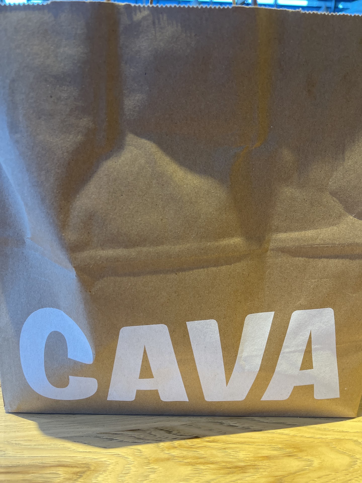 Bottom line: If you have not tried CAVA, and especially this location, you should go and try it out. I’m not a big fan of restaurants that serve your food in a bowl, but my daughter usually orders the bowls; so I brought her with me to check this place out. They did a few things at this place that really stood out for me. I ordered a Pita and she ordered a bowl. They have some really interesting chef table options, but I did not want exactly what was listed. It was very helpful to know recommendation combinations, so I used the chef options as a guide. I got a pita with red pepper hummus and harissa, ½ chicken, ½ harissa chicken, pickled onions, salt pickes, tomato and onion, a little bit of cabbage slaw, and olives. Dressing was a combination of garlic dressing and hot harissa vinaigrette. We had water to drink. What stood out? They warmed my pita on a press quickly before they started to put on toppings. They put on plenty of hummus and harissa using a scoop. The very next step is that they took the time to spread out the hummus and harissa evenly. Most places they don’t care. They didn’t even ask me, and they just did this. This was my favorite. They recommended that since I was going so spicy to do ½ and ½ chicken and harissa chicken. Turns out this was just the right spicy for me. Since this was my first time and I didn’t know what some things were, they took the time to answer my questions. Although they wrapped my pita, they gave me a nice tray (which you have to return) to eat the pita off of. It was a rectangular plastic dish. Most places don’t give you anything, or they give you some cheap and ugly metal thing. Why is this important? Holding the large pita, it could have collapsed on me as I got my water and napkins. When I ate it, I had a plate to use. They automatically gave my daughter a lid for her bowl (which she used to take the remainder home).