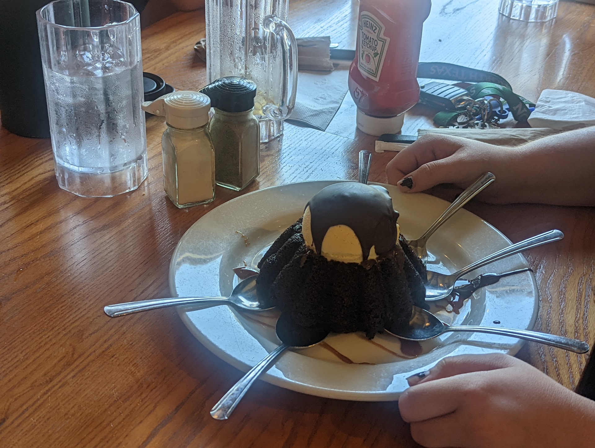 Ā Ā Ā Read moreI only gave two stars to one of their managers whom unfortunately i dont recall his name ! we sat at our table at 12:45 PM the waitress came up and took our orders shortly after which we were glad since we were so hungry, surprisingly i did not see her writing anything down but i figured she probably trusted her memory. after sitting down for half an hour the manager came by and asked us how we were doing and we told him we were waiting on our drinks but he said that it did not seem that they had any drinks for us on the way so he apologized and took our drink orders AGAIN! shortly after our food arrived and both mine and my husband s burger was done wrong! my husband ate his but i could nt eat mine since i can not eat medium rare meat so we had to ask another waiter to send my food back since we could nt find our waitress any where. my husband finished his food and was waiting on a desert but i still had n`t received my burger! finally we asked to talk to the manager and at that time it was 2:20 PM he came by our table, apologized and gave me my burger and fries which was totally cold and a totally different type of burger from what i had ordered. even the last minute was a struggle since they had made a wrong billing ticket for us. finally the waitress came by with an attitude and told us " my manager is so nice, he has covered the bill for you" frankly that was the first time that i got so irritated with a waitress. the manager was nice and you could tell he wanted to compensate but a big NOOOO to the waitress! even though we did not pay anything i went home hungry that day which was not...