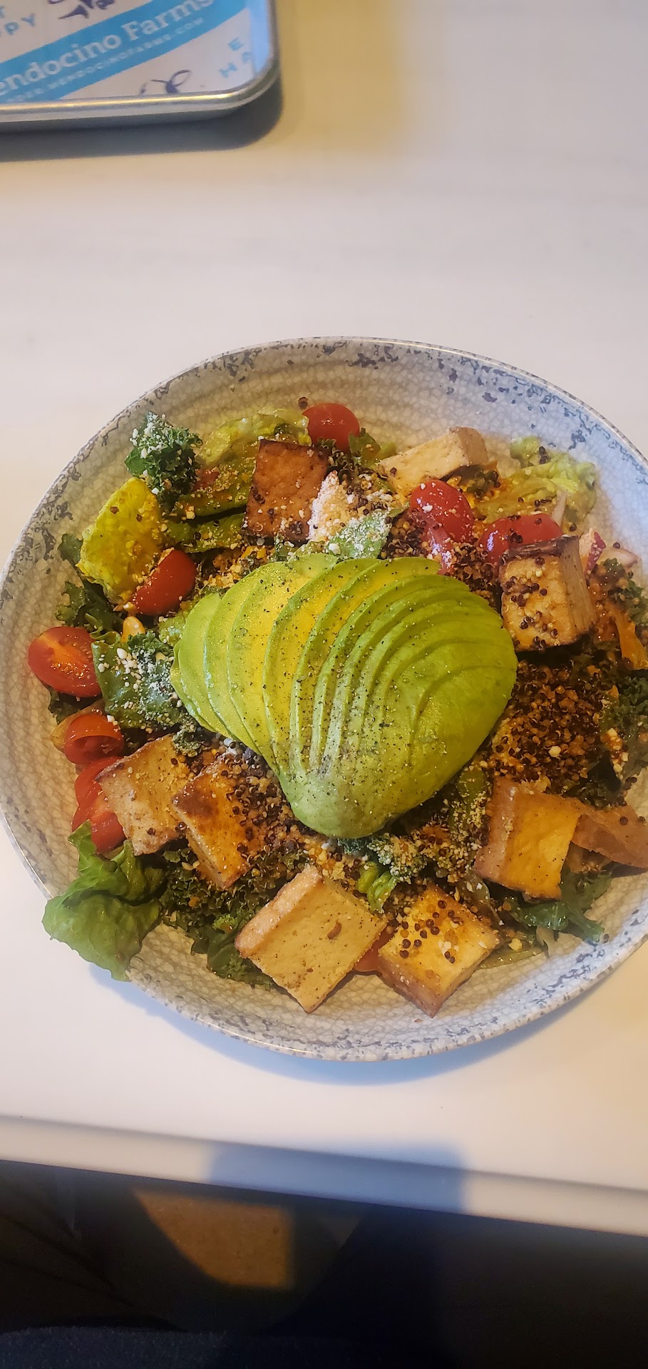 The new salad was absolutely delightful. The ingredients were incredibly fresh, with lettuce that was perfectly crunchy and small tomatoes that were so fresh they burst in your mouth, releasing a burst of flavor with every bite. The tofu was perfectly seasoned, adding a nice texture and taste to the salad. The avocado slices were creamy and ripe, adding a rich, buttery element to the dish. The red onions were crisp and slightly tangy, balancing out the flavors nicely. The mix of herbs brought a wonderful aroma and taste to the overall salad. The dressing was light yet flavorful, complementing the fresh ingredients perfectly without overpowering them.