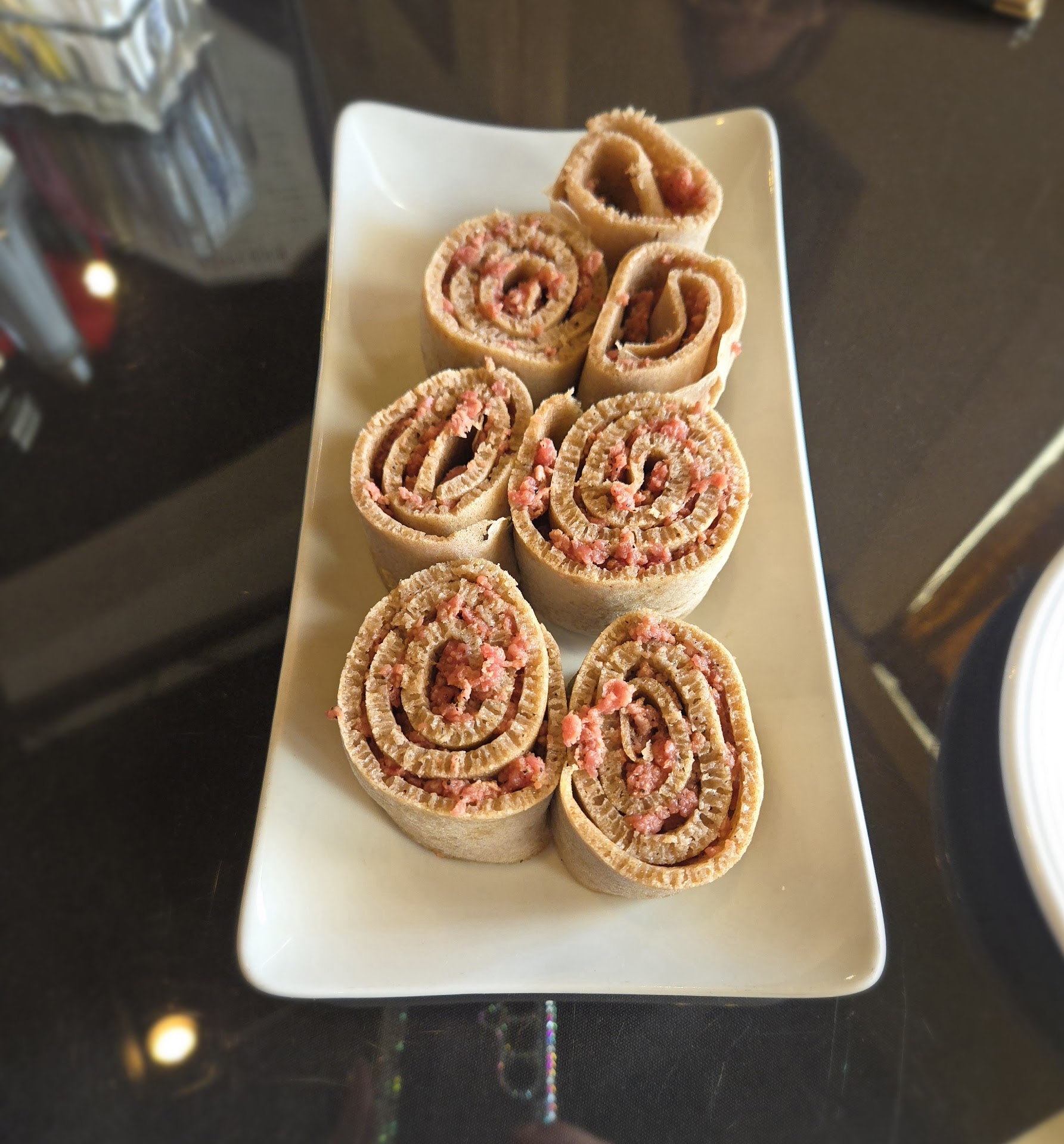 Read moreWe commenced our meal with Kitfo, a delectable dish consisting of spicy, rare or slightly cooked ground peeled knuckle beef tartar artfully mixed with exotic spices and butter, meticulously shaped into rolls, and served piping hot. This culinary creation was simply divine. Additionally, we savored fried crab and mozzarella bites, which were complemented by a tantalizingly spicy silssi dip. The Injera bread, with its delicate texture, softness, and rich flavor, further enhanced our dining experience.