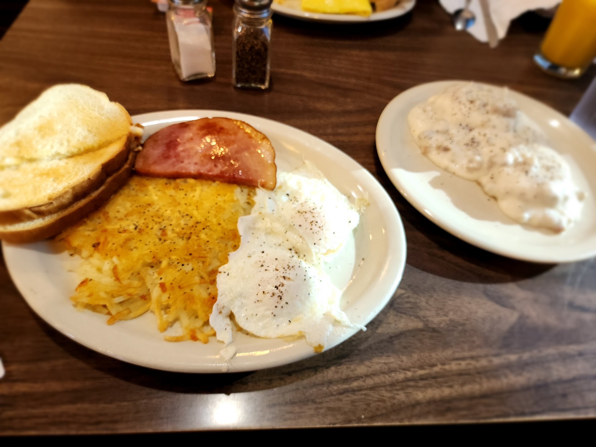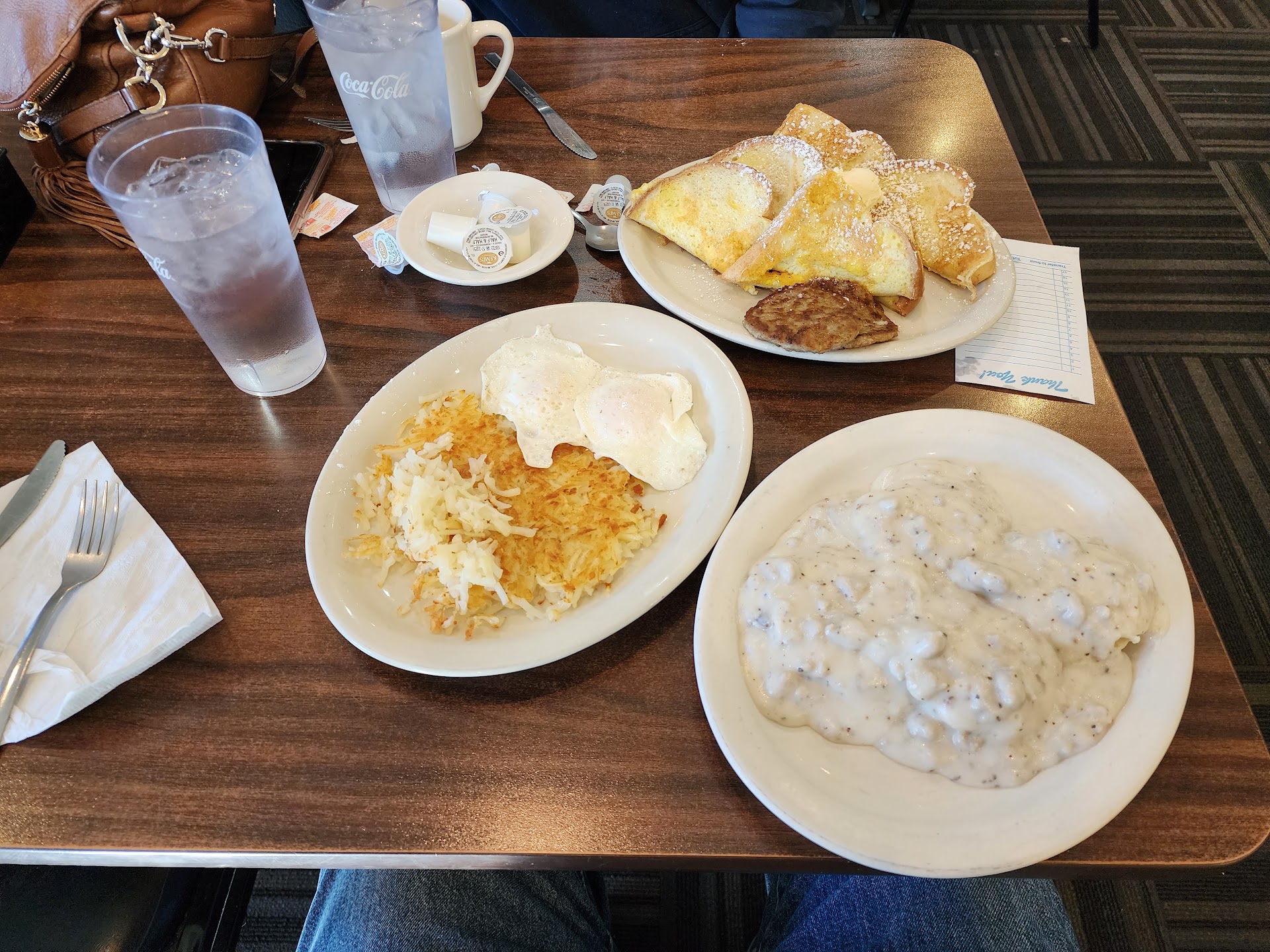 It took the waitress over 20 minutes to even get to our table. Then we when she took our order she went and collected 3 other orders and turned them all in at athe same time so people who ordered after us got their food 1st. Then when i went to check on how much longer the waitress rudely stopped taking someones order and said you ordered hash browns it will take longer. So then we are sitting still waiting and I hear the waitress talking badly about us saying tell them if they are in a hurry next time don't order hash browns! We are from out of town and this is the worse experience we've had out of town. We ended up leaving before we even got our food and the waitress stops us in front of the rest of her customers and says so you don't want your food now? She has really poor...