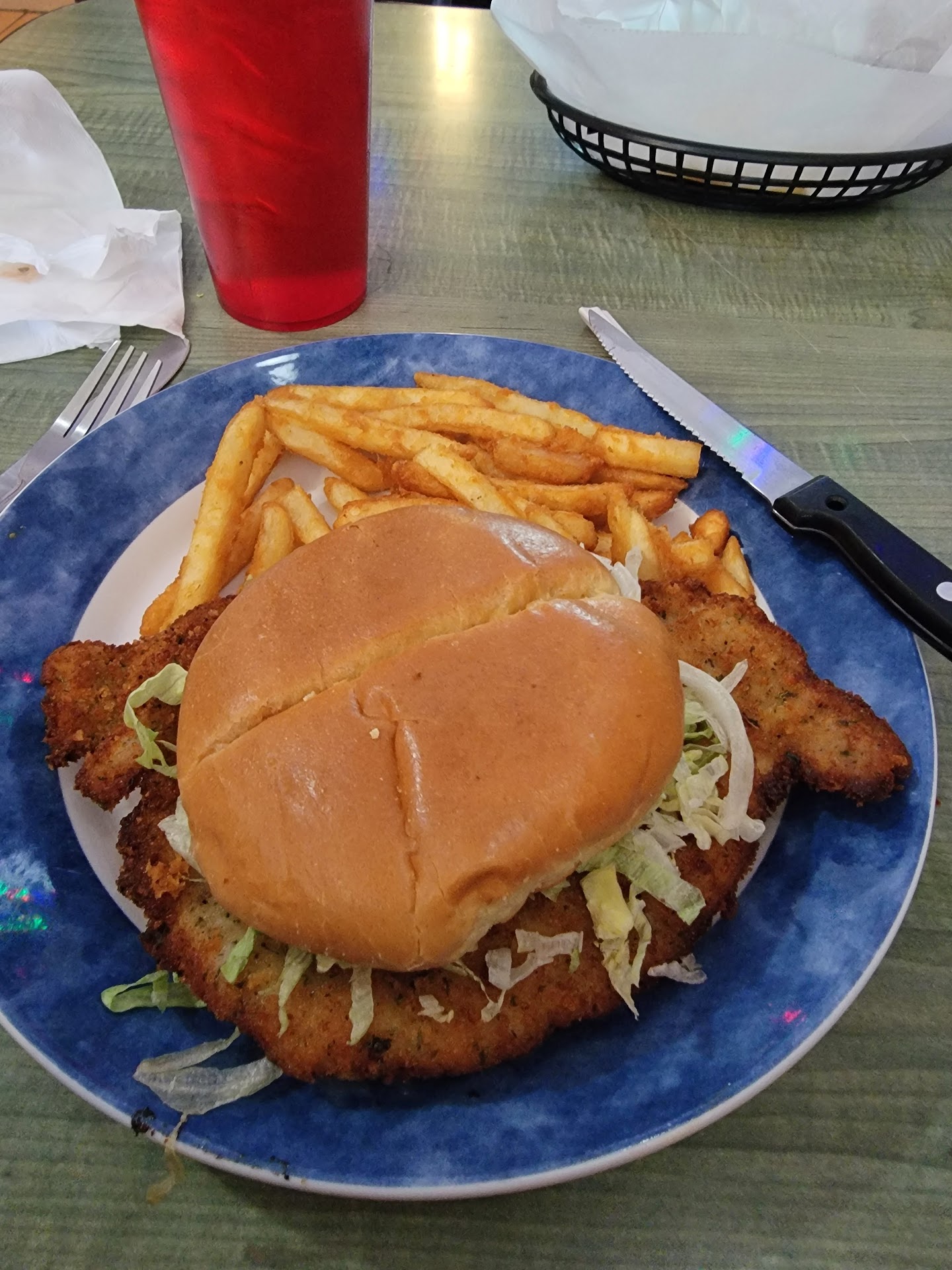 Read moreThe fries are really really good. The service was good. I had a pork tenderloin sandwich. It was OK. Not hand breaded. Actually Italian seasoned so guessing frozen national distributor. Would have been really good on pasta with a red sauce. But wasn't but. Just not an Iowa...