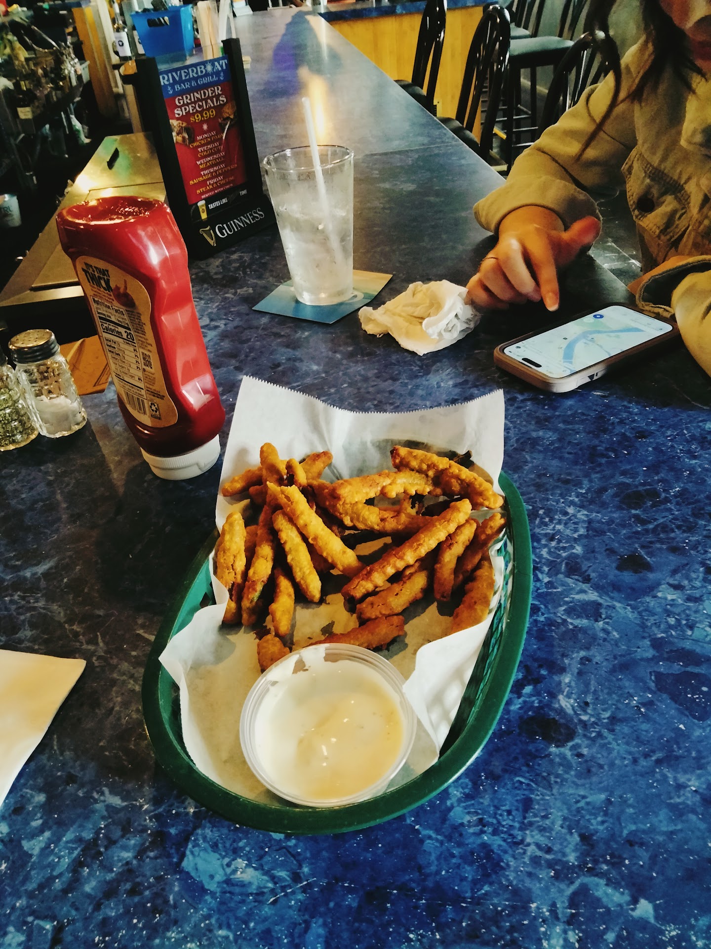 Ordered a hamburger, bartender asked me if I wanted the works. I said what is the works? She said, "lettuce, tomato and mayonnaise. I said ok. When I got the bill they charged me $1.50 for a leaf of lettuce, another $1.50 for a slice of tomato and another $1.50 for a swipe of mayonnaise. So it was $10.00 for the hamburger plus, $1.50+$1.50+$1.50+ tax for a lousy small medium size hamburger. Glad I didn't order ketchup or salt and pepper with that. Oh!! Don't forget the 20% tip your suppose to leave. When I complained she told me the next time you come in I will take care of you. Do you actually believe I will ever go back to the customer rip off...
