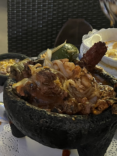 The WOW factor is this Molcajete (for 2) with an amazingly delicious guajillo pepper red sauce, which I put on EVERYTHING!! It comes to the table bubbling hot! Although, I would have liked for it to stay bubbling hot a little longer. It’s filled with steak, chicken, shrimp, panela cheese, fresh cactus leaf, chorizo and grilled onions. I would have preferred for the onions to not be on top (there was a lot of them) and for the steak to show more instead of being buried. I would have liked a better presentation (from other Molcajetes I’ve had).