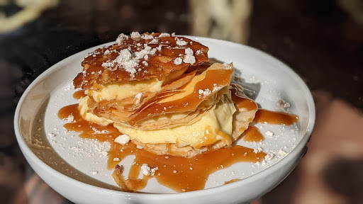 Finally, I asked whether they had a dessert menu, and the waiter acted a bit coyly while responding that he'd check. When he returned, he brought with him a complimentary creme brulee Napoleon. It was so creamy, and crispy and delicious! What an experience! We'll definitely be back, and I highly suggest you do the same.
