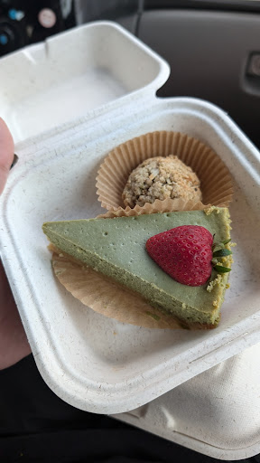 I also indulged in a few treats: the Turmeric and Ginger cookie, the vegan Coconut and Lime cookie, and the cornbread. Each item was bursting with flavor, and the ingredients were so well balanced that I could savor each one individually. My boyfriend chose the Matcha Cheesecake and the vegan Coconut and Lime cookie as well. Surprisingly, the cheesecake had a unique flavor profile that reminded me of guava and cheese, with a matcha aftertaste. It was delightful, and I couldn't help but wonder if the crust was made with guava cookies. There was also a hint of salt and lime that added an extra layer of complexity to the flavor. (Don't quote me on the guava flavor, maybe I'm just crazy.)