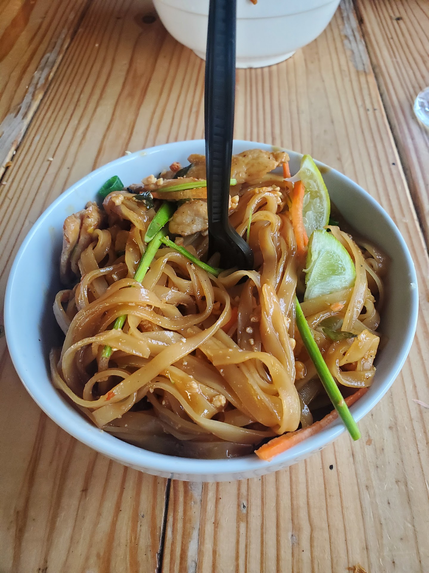 Pad thai: first time I've seen this version of this dish. I eat Thai food every week and host a Thai event monthly with over 30 cooks; so I'm extremely familiar with the food and culture, again, never had seen this Pad Thai version. Plus one of the members of our group is actually from Thailand....