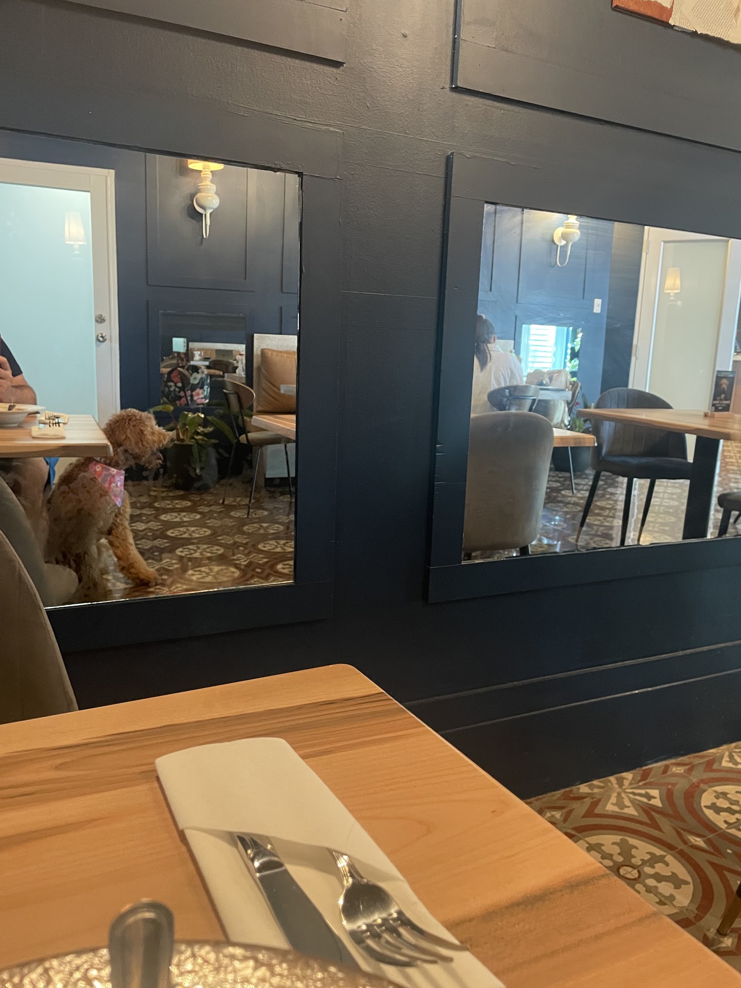 Second, I'd like to talk about the ambience and overall looks inside the restaurant. The place looks charming, cute, clean (considering dogs are welcome inside the dinning facility) and we'll decorated. The decorations are a bit too much for my taste, but they look good.