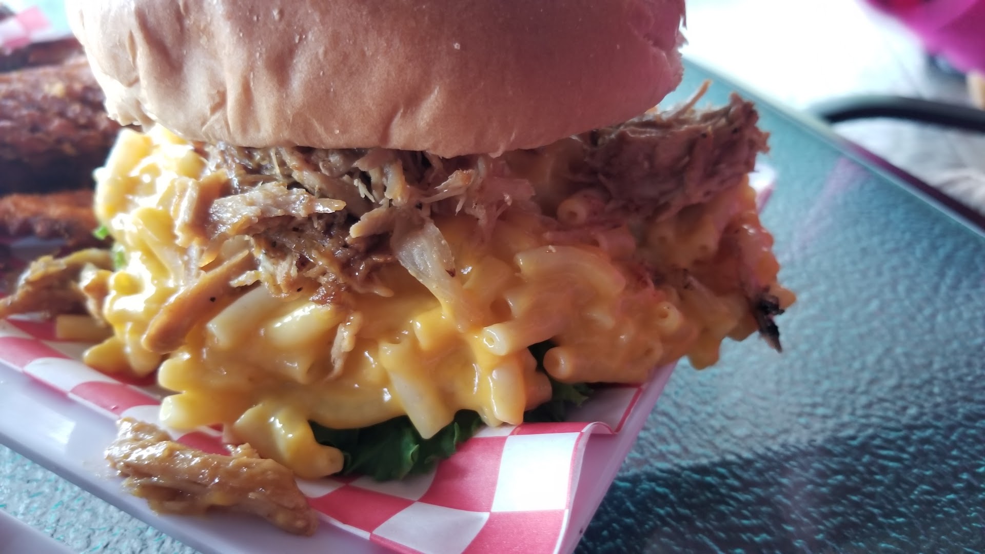 mac and cheese burger was ordered without lettuce and tomato and it was put on it anyway. the mac and cheese is clearly box velveeta mac and cheese. its expensive for that poor quality the mojito jack daniels tasted like nothing the place was empty when we got there not a single customer but the tables were dirty we ordered a beer and they said they were all warm (again the employees were just sitting on their phones when we got there) the mofongo burger was good but the side was $3 extra the service was fast overall it was too expensive for the cheap outdoor...
