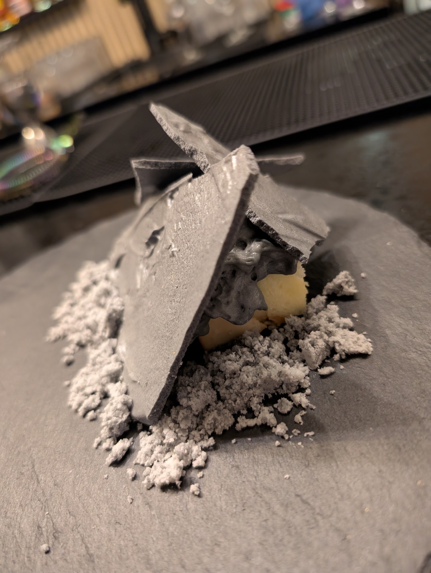From his unique take on Mac and cheese (try it before you tell you've heard this story again), perfectly, I mean perfectly cooked octopus with Risotto, he killed it with his desert concoction. I'm not sure what it's called so just leaving a photo here for y'all to see and try.