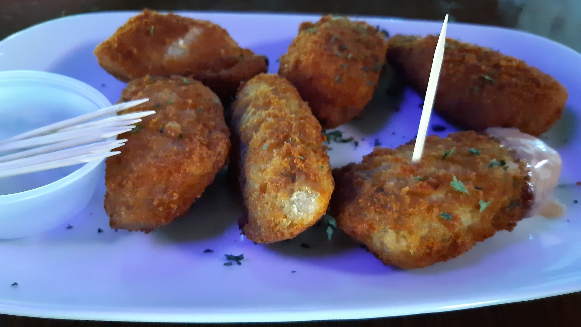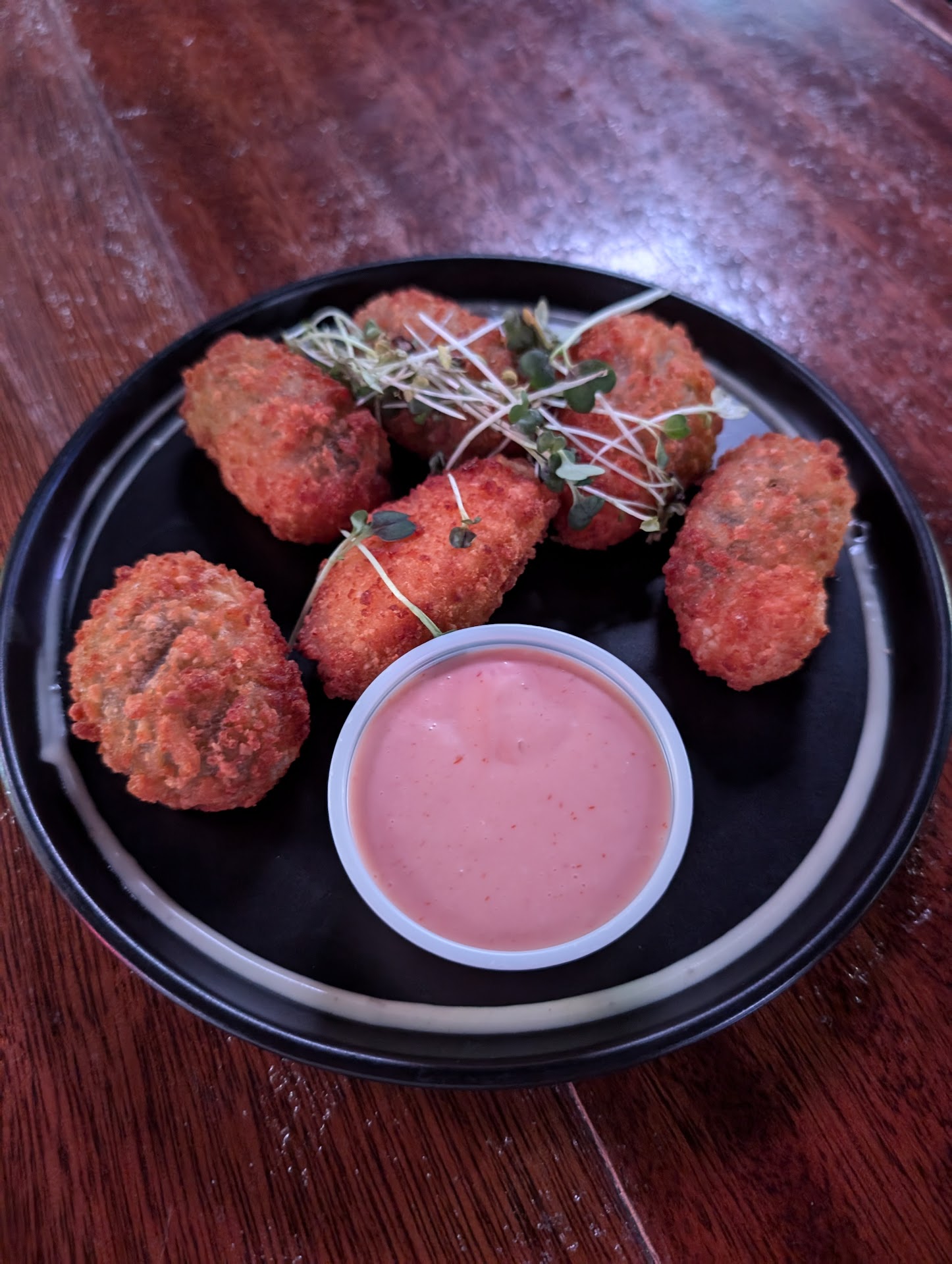 The jalapeno poppers are the best I've had. They're a cheesy-creamy blend and perfectly fried. The chicken wings have a great crackle on the skin and the BBQ on the side is sweet and smoky. My complaint on the wings were two of them were tiny; they'd typically be "bonus" wings. But those two counted as part of my six, so either it was because I was a tourist, or there's a general quality control issue there, but either way, it detracted from a potential 5-star experience. The fish tacos are amazing, with fried grouper and a tangy sauce, and I highly recommend ordering them. The chicken quesadillas are also a great option.