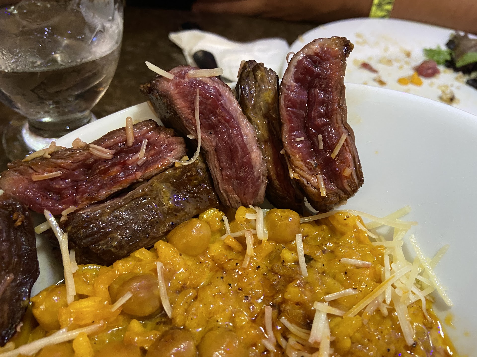 Read moreAfter reading all the reviews, my husband and I really wanted to try out this restaurant. Walking in, we waited for awhile to even be seated. There was no one else in the restaurant. Saw the lunch menu prices and couldn’t believe how good they were so we ordered off of there. We then asked how much would a specific alcoholic drink would be and the waitress said it was $6, sounds great right?! So we order 2 each. Tasty drinks. Then we order the garbanzo risotto with the steak. Waitress asked how we want our steak cooked and we stated “medium rare to medium.” Got the risotto and I immediately noticed that the steak was raw, not even cooked rare, just straight up raw. We informed the waitress and she said “well you asked for medium rare and that’s medium rare.” We couldn’t believe it. Look at the pictures (first picture is what we first received.). Then she takes it back and has a terrible attitude about it. Not even two minutes later she brings it’s back out and the steak was just seared for 20 seconds on each side. We cut it open and it’s still raw. We were frustrated but just ate the risotto and pushed the steak to the side. When we received our bill, it said the drinks were $8 each instead of $6. We informed the waitress and she goes “oh??? Sorry???” And does nothing about it. The service is a lackluster and it’s a shame because there’s a lot of potential here but that service will drive people away. Beware of eating...