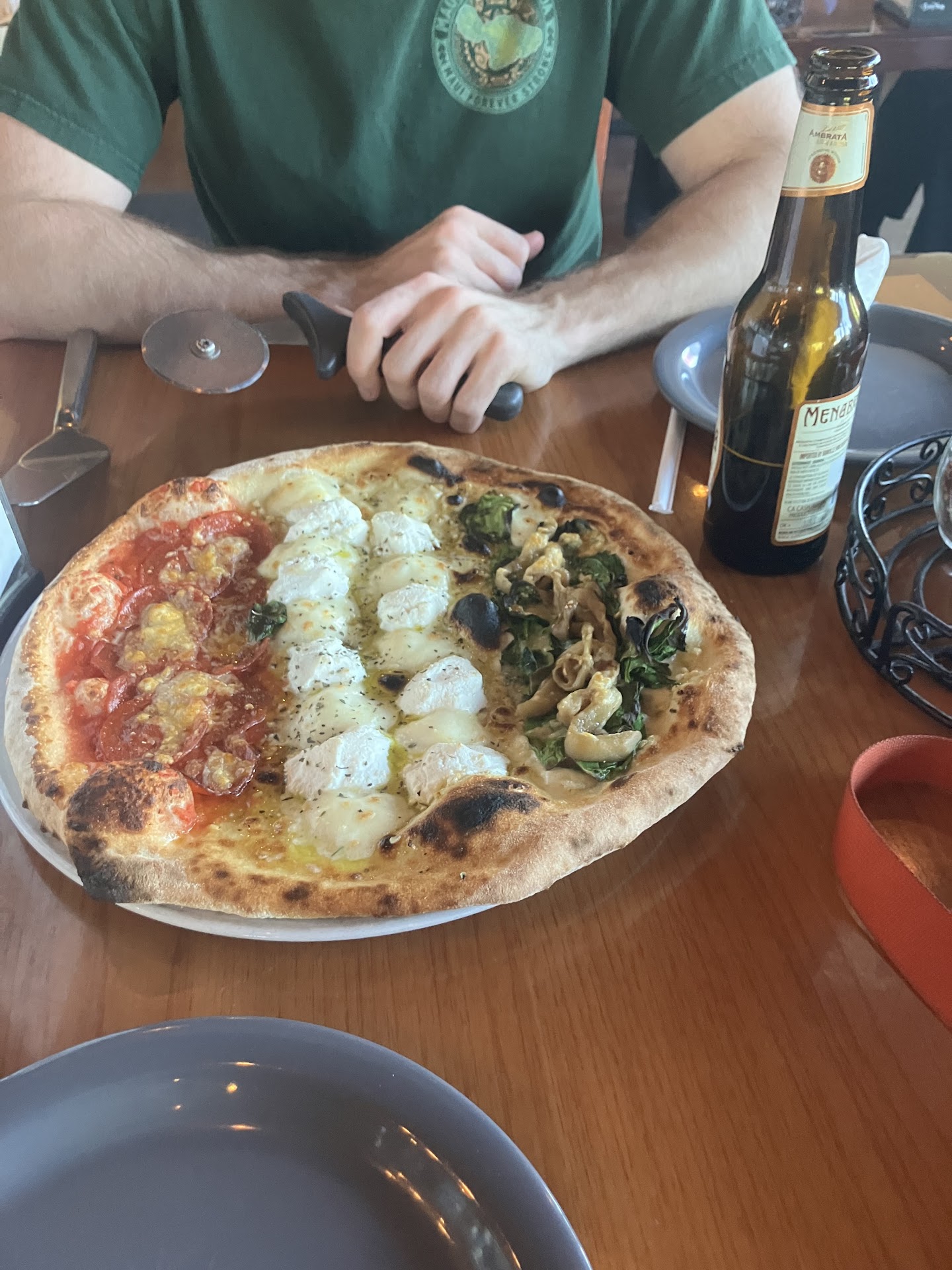 Read moreI would give this 4 or 5 stars, based on the quality of the pizza alone. Unfortunately, the attitude of the owner and some of the staff, which is of course a significant part of the dining experience, was terrible. They were busy. This is a Saturday night. You have to order at the front counter, which only has one person taking orders. If they're busy, you have to stand in line to do so. This evening, the lines were long. If you don't pay up front (before you get your meal) you have to stand in line again to pay before you can leave. If you pay up front, and then decide you want dessert, or another drink, you have to stand in line again to order and pay for it. The friend I was dining with ordered a pizza to go, to take home to her husband, in addition to the meal she ordered to eat while we were there. The to-go pizza was brought to our table in a left over box after we finished our meal. The line at the front counter was very long. My friend asked the owner if he could keep the to go pizza warm while we were waiting in line to pay. His answer was no, nothing could be done, they don't make pizzas to go! She then asked for one of the cardboard boxes they use for the to-go pizzas the owner said they don't make. The cashier gave her one. At this point, the woman making pizzas started yelling to us and the cashier that those boxes are to be used only for to-go orders! This particular order, as opposed to the food we ordered to eat in, was clearly a to go order, not a left over, and should have been brought to us in a to go box to start with. I only hope the cashier didn't get in trouble for clearly doing what was right. This experience was very unpleasant and I have to blame the owner, who was right there. Not sure who the lady yelling about the to go box was. I'm not going back - certainly don't want to be treated this way in...