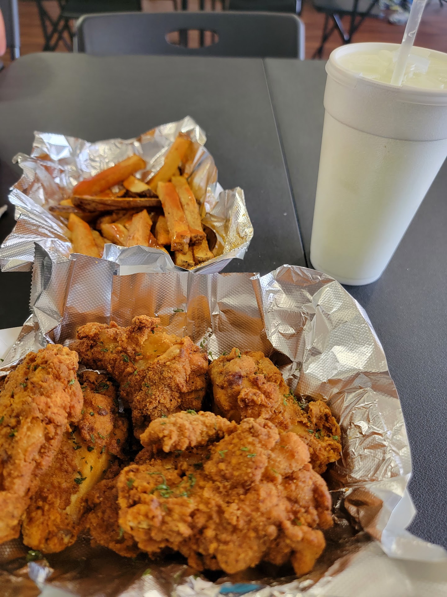 Read moreI like to support the small business restuarants. Today we found great food at a reasonable price. I had the tilapia sandwich. Fish overflowed the bun, I cut in half to save for another meal and still had plenty My husband had the smokehouse chicken sandwich. (I tasted it too) That was very good also, great flavour. Lettuce on both the sandwiches was crisp and fresh. French fries were so tasty with the seasonings and cooked to perfection. We...