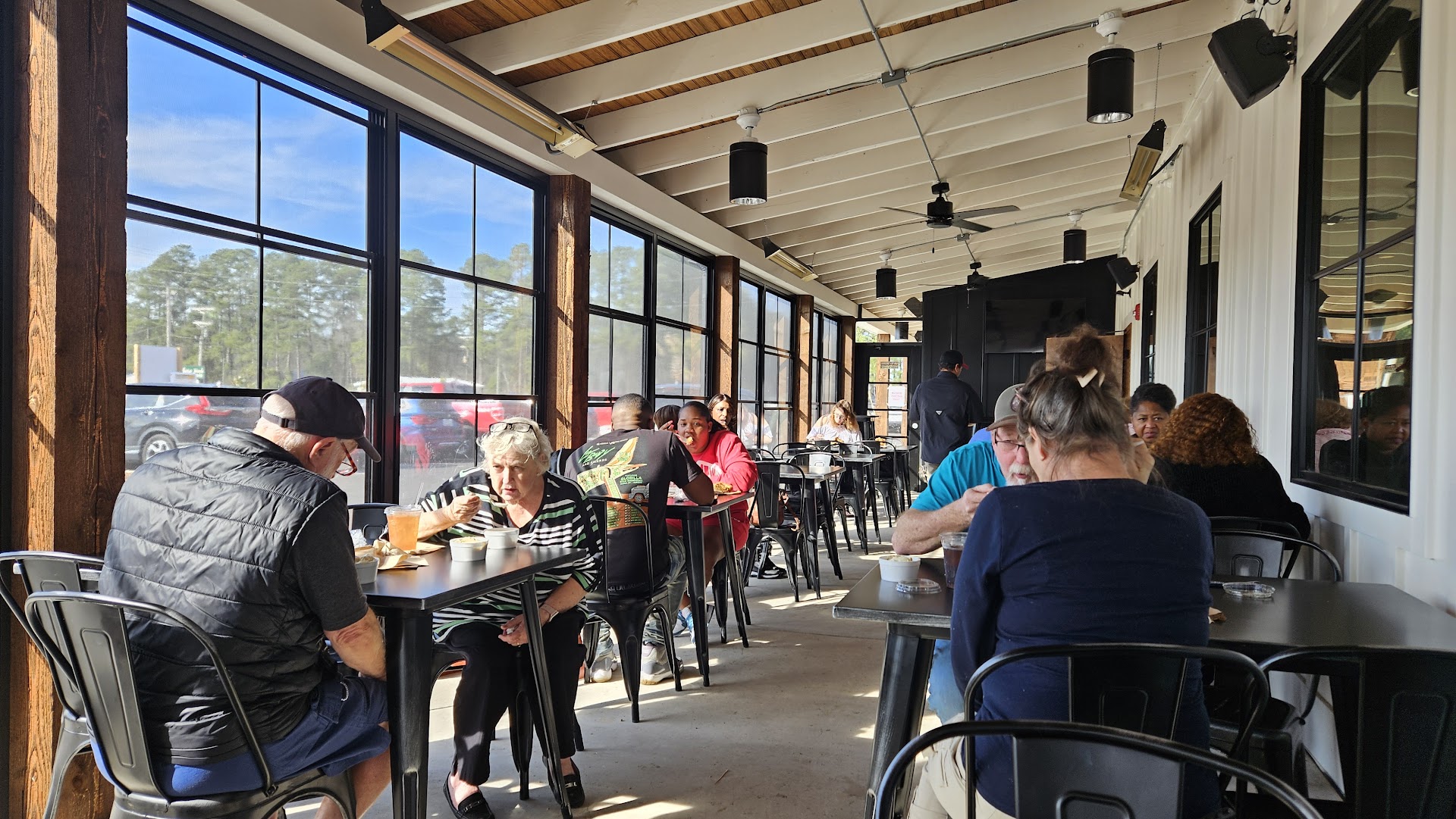 Overall I was pretty disappointed after hearing all the excitement about the opening. The place is new & functional with lots of tables altho they are a bit too close together for comfort - not enough room to keep chair backs from hitting chairs at neighboring table. Skinny people don't eat here - the rest of us need more room
