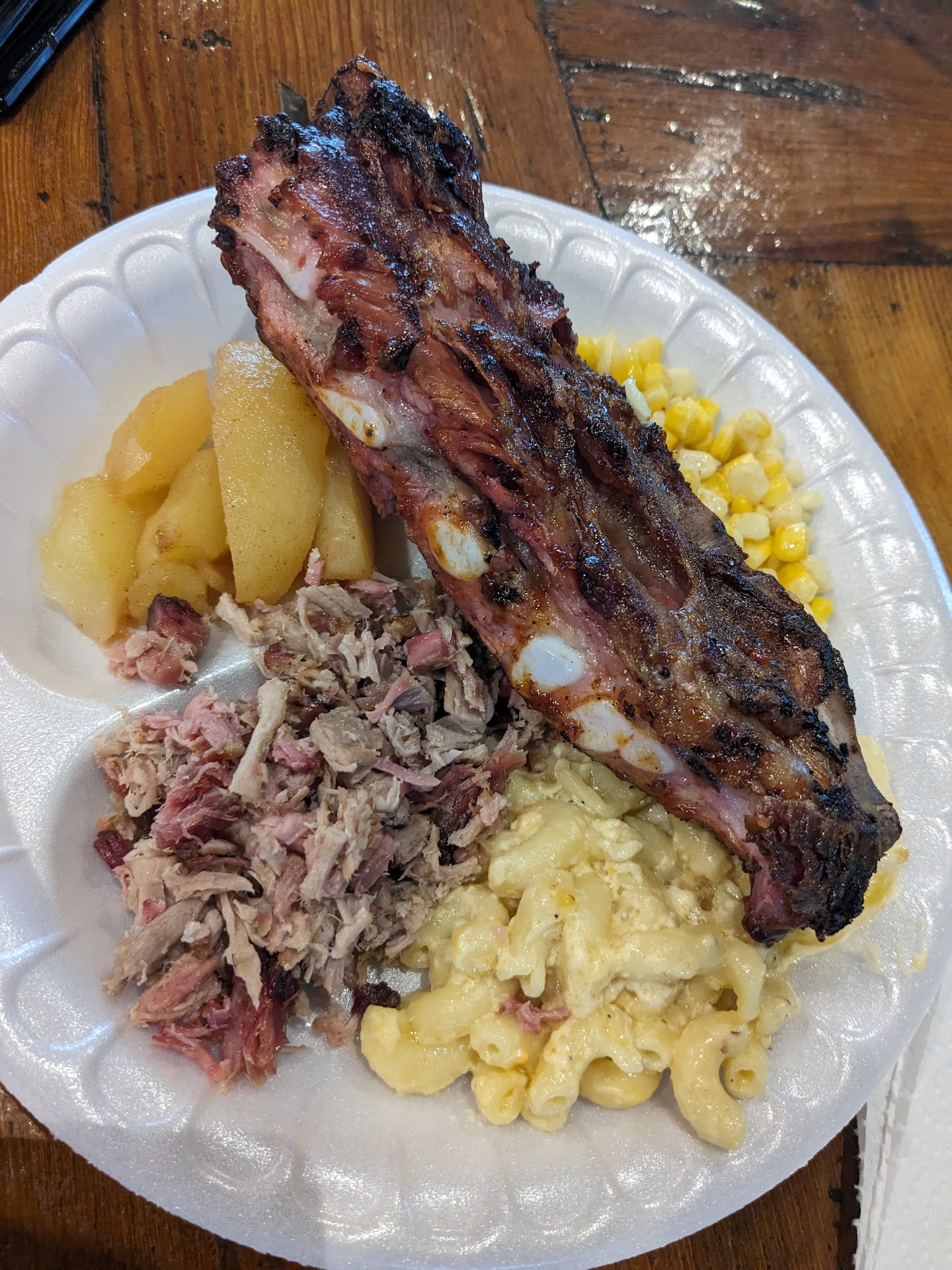 For the sides, I had the taters, corn, cabbage, beans, and a slew of other items. What most stands out to me were the beans and cabbage. The beans tasted like they were heated cooked down ketchup and frankly had no taste of the traditional barbecue of either the Carolinaās or around the rest of the nation. I wouldāve preferred they open a can of Bushās baked beans and served that.