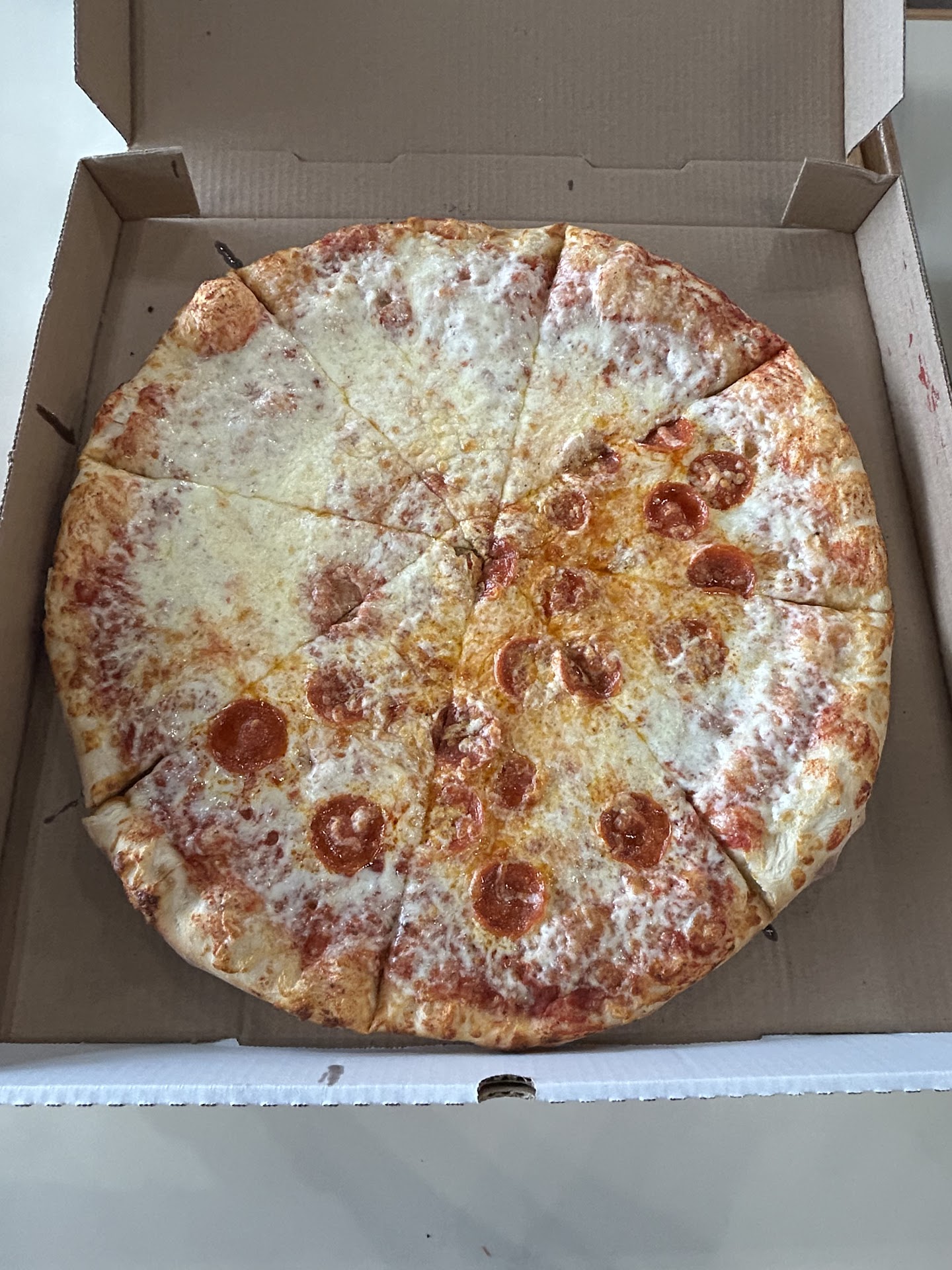 We got the Huge 20inch half pepperoni / half cheese pizza and cheesy breadsticks. The pizza was amazing.. great sauce and cheese flavor! The breadsticks were mouth watering and packed huge flavor. We were told it would take up to 30 minutes to be ready but the order ended up being done in only 10 minutes. Overall, VERY IMPRESSED!