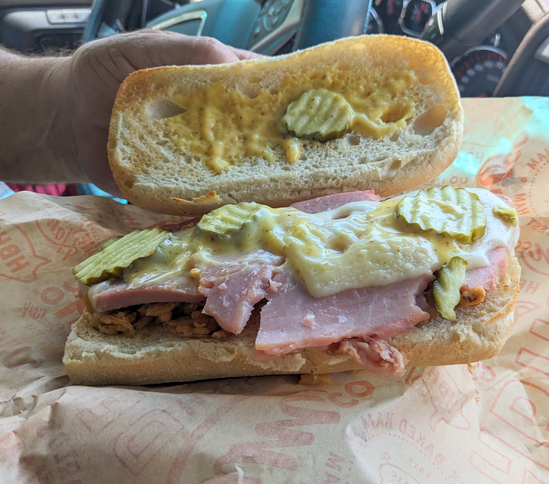 Read moreNever eaten Honey Baked Ham and wanted to give it a try being new to the area. The restaurant was empty when we got there and the gentleman behind the counter greeted us. We asked for suggestions on the best food (honestly I thought they would have had more than sandwiches) and ordered our lunch. We got 2 sandwiches, canned soda (our choice) and a bag of chips each. Our total was right around $30. I thought these are going to be huge sandwiches for this price, i was wrong. They both had a few pieces of meat, a slice of cheese, some lettuce, tomato and whatever condiment was on them. That was it. I could have made bigger and better at home but this was literally a basic sandwich you would make at home and was nothing special. I was so disappointed in it and will not be going back. It is a shame because the employee who helped us was SO nice, but everything else was just basic and not worth the price.