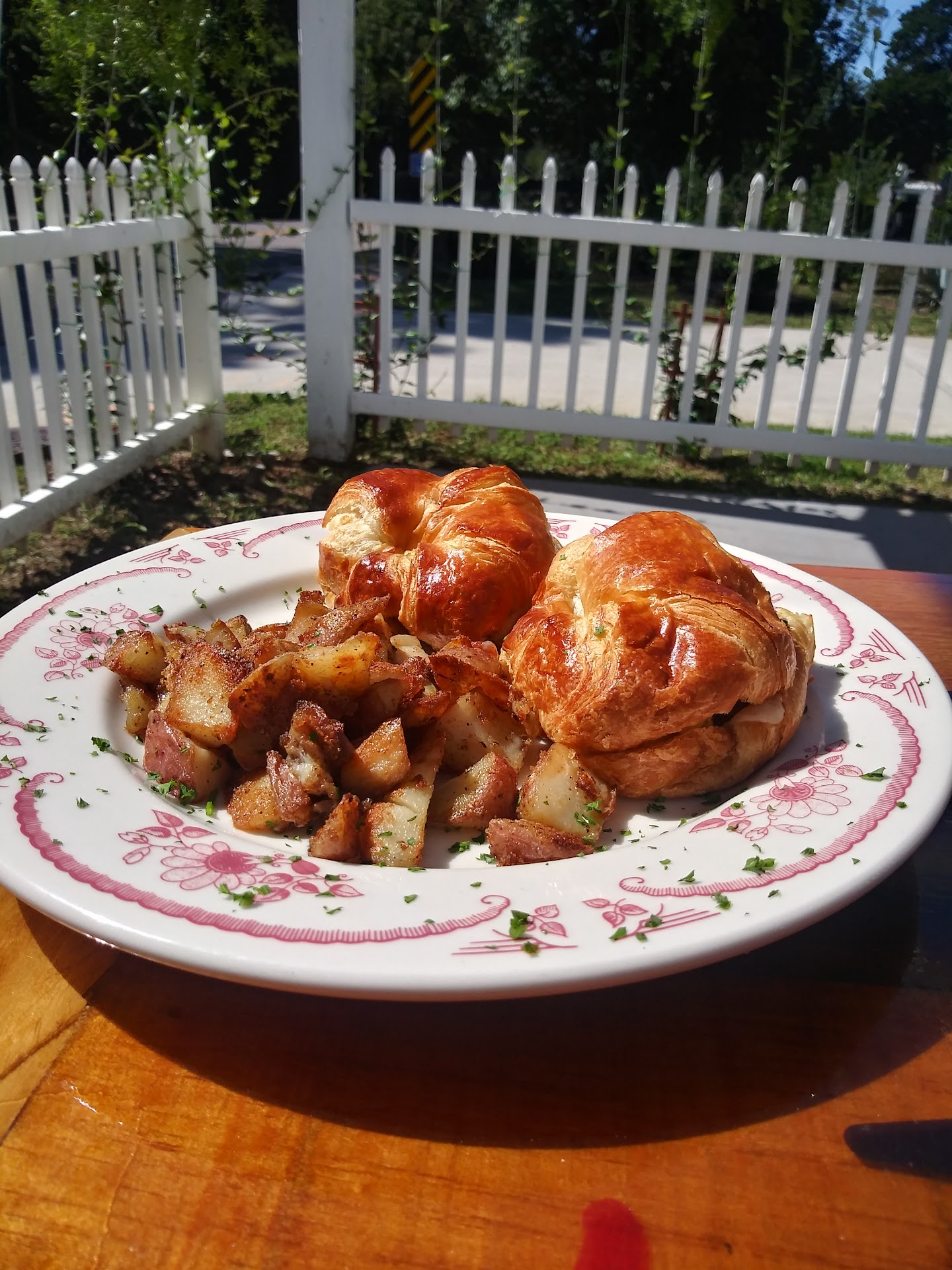 Read moreGo for the macarons, stay for a croissant. You order at a deli counter and then the cashier will bring you your order. The building has the potential to be charming but is not designed for people with mobility issues (injured, handicapped, elderly). In good weather I would probably really enjoy eating outside on their lovely patio. However, I have a broken foot and I’m using a knee-scooter. While they do have a ramp going into the dining area, there is no access for someone trying to go into the deli on a wheeled device. You need to be able to roll through a gravel parking lot to the deli entrance OR walk down to steps from the dining to the deli. This isn’t a reflection of their food but it is very inconvenient if anybody has mobility issues.There is no way that someone in a wheelchair would be able to order and themselves. * A proper wait staff who came and took orders would make the experience better for those who have difficulty navigating the cramped building.* Pros: Some of the food we’ve had has been truly excellent. It is authentic and reasonably priced. I thoroughly enjoyed the quiche Lorraine. My party got 10 macarons and ALL were delish. I personally loved the kalmata olives in the potato salad side but my dinner companions did not.