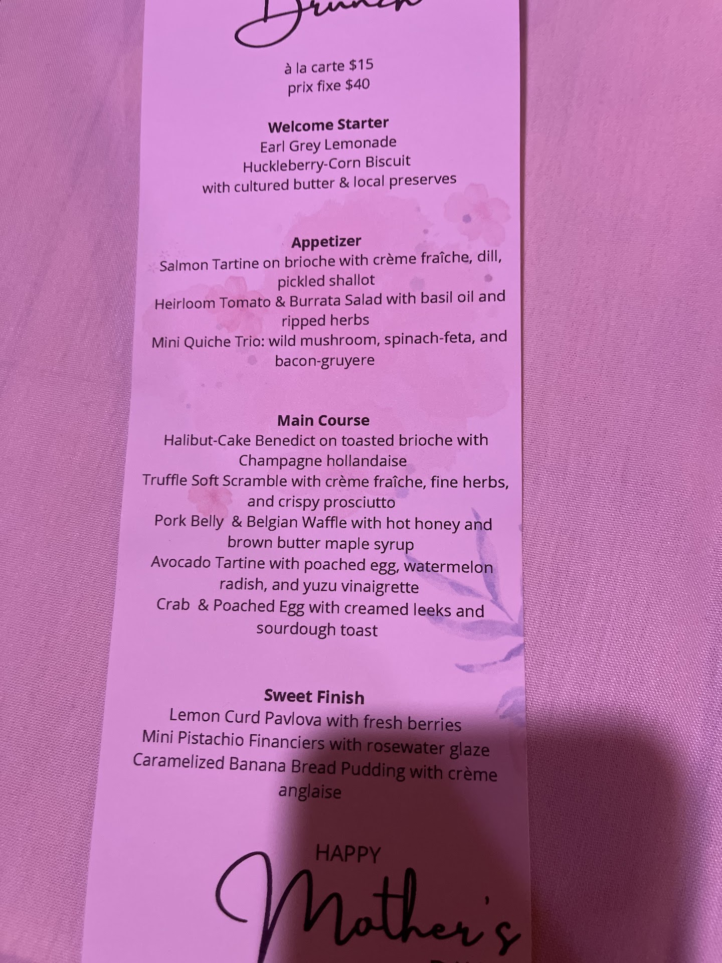 Read moreMy daughter-in-law took us out for Mother’s Day on 5/11/2025 to Malias for their special Mother’s Day lunch. I had not been back to Malias for quite some time, but in the past, I had enjoyed some really good dinners there. However, time has really changed this place. Before we went, I tried to find an online menu for this “special” lunch with no luck. If I had found it, we would have never booked the reservation. The choices were not very enticing and it was difficult to make a decision. First of all, it was explained that we could choose one from the appetizer, the entrée and dessert for $40 or go a-la-carte for $15 per each chosen separately. We decided to go a-la-carte because nothing appealed. There were very little actual meat choices. When we arrived by the way, at 1:30 PM the place was more than half empty. As soon as we were seated the wait person brought two biscuits and the menus. I noted on the menu the biscuits come with butter and preserves which was not served with the biscuits so I had to wait until I could get their attention and finally the butter and jam were brought. Then, there were no utensils and we had to get their attention once again to get utensils. Reminder, the place was not busy but I think they only had two servers running around. We finally ordered and each got one appetizer because we decided we were not going to stay for the entrée. So, for $15 each, I ordered the mini quiches and my daughter-in-law ordered the burrata salad. The quiches were like eating cardboard…very dry and crumbly and basically tasteless. (I think they were frozen bought in bulk) The burrata salad came with barely any greens and was extremely stingy. To sum it all up, the service was not good, the food was terrible and costly to boot. Also, when we asked for the check, the server blew the candle out as she left to get the check and we were still sitting there. We will never go back. From there we went to La Parisienne and had a really great lunch for half the cost.