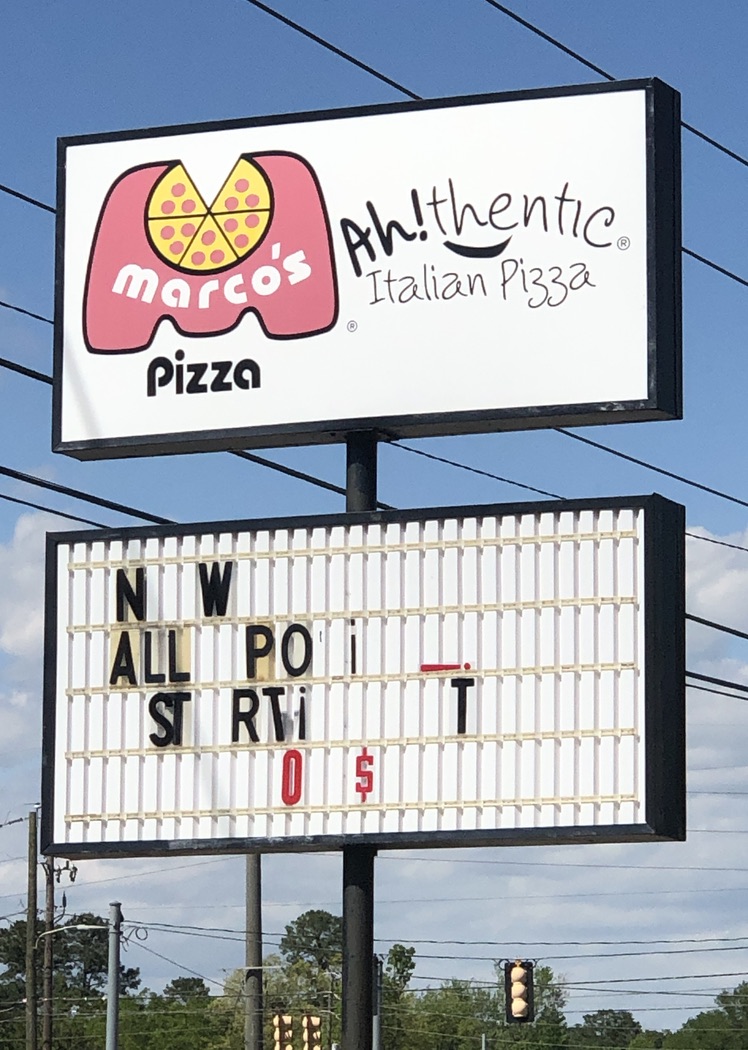 Read moreAfter returning home from out of town we were grocery shopping and my husband stated how he would love a good thin crust pizza. I told him our office orders in from Marcos and it’s the best! We called and ordered two large thin crust pies. I arrived promptly at the designated time to hear that my pies were ready. When I looked in the box , only one was thin, but the one for my husband was not. I told the cashier we had ordered both as thin. She and another employee who I can only assume was the manager ( she was in a black shirt, all others were wearing green)asked me what I wanted her to do, and did I want her to remake the pizza. I sighed and said, yes he wanted thin. I went ahead and paid for the pizzas.I was frustrated as we had a car full of groceries, but I understand that mistakes happen. Never ONCE did either employee apologize for the mistake. I said “yes remake it, and the manager said she would put the thin pizza under the warmer while they remade the other one.I said, I’ll go outside and let my husband know what happened.We sat in the car for about ten minutes and I returned inside and asked about how long it would be and was given curious looks. The manager said... we didn’t know you wanted it remade, we thought you were going outside to call him. ( Remember I had already PAID for two pizzas) By then I was beyond irritated but still never made a scene.AGAIN NO APOLOGY!! I returned to the car and told my husband. We drove around to the drive through to wait by the window, and was told to wait unless a vehicle came up behind me and then to just pull up and they would bring it out to me. A car pulled up behind me so I decided to just go back insideand when I did the guys in the back were nodding towards me and whispering to the manager. She brought me the pizzas and said “Here you are” NO apology, NO offer of a reduced price for my troubles, NOTHING!! I work in an environment where customer service is paramount and MORE important than the quality of the product !! I love the Marcos pizza but was EXTREMELY disappointed in the lack of concern for what was clearly a mixup on the part of the employees, and a clear lack of concern about my experience at their restaurant, which is located on Silver Bluff Road in Aiken...