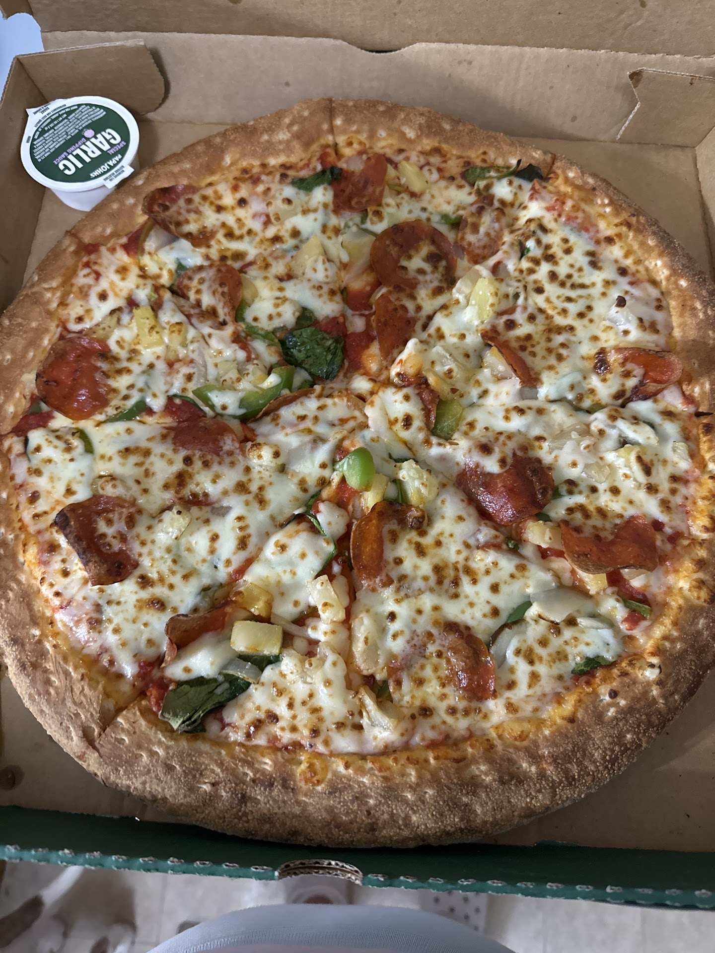 Read moreI order from here all the time and barely have an issues, well, tonight I have a problem. I requested certain toppings on my pizza: Black olives Fresh spinach Green peppers Onions Pepperoni Pineapple