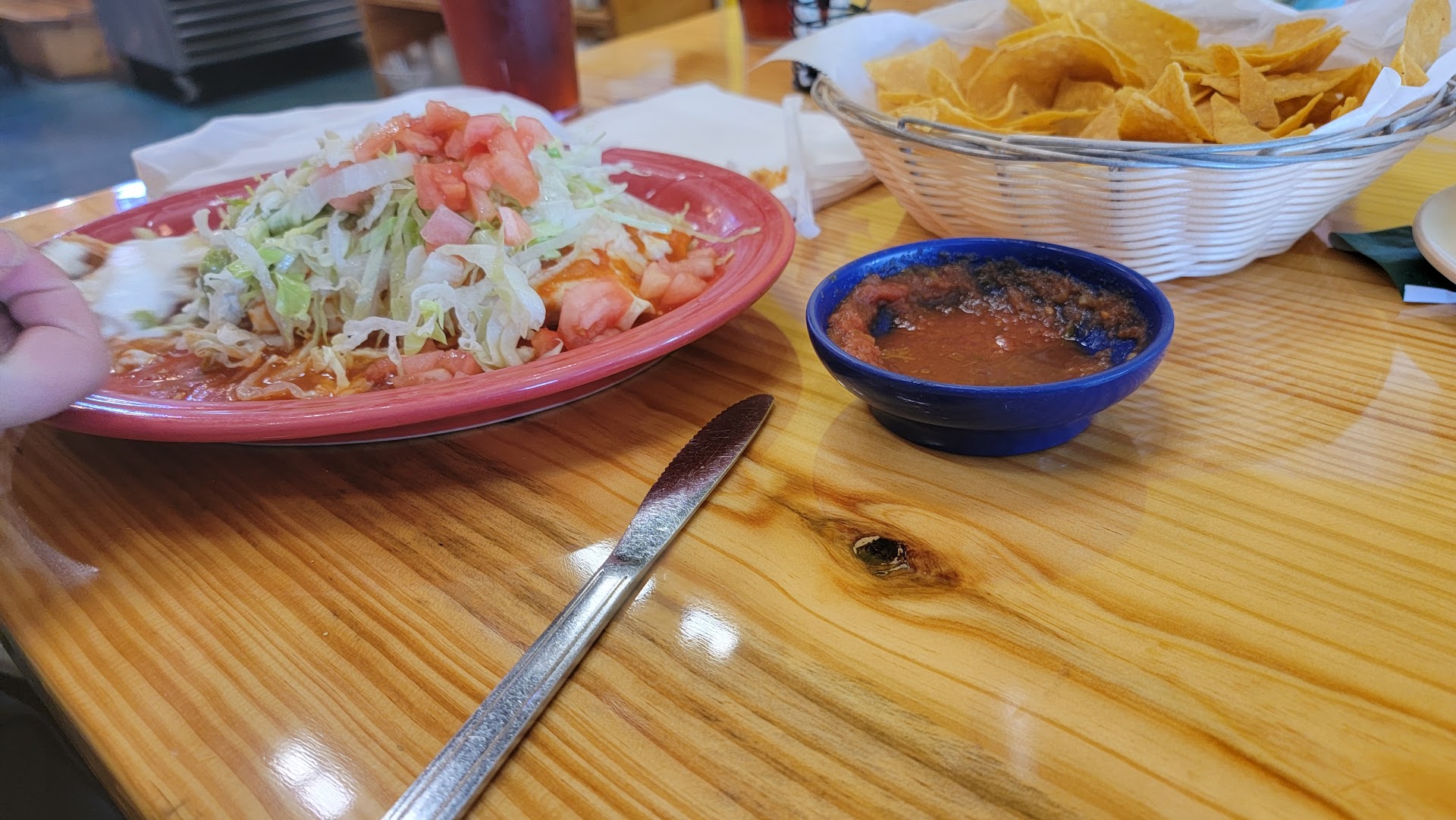 They forgot half our order. We needed limes and salsa verde, the salsa bar didnât have anything. We waited 10 minutes for that, and yes our food got cold. The salsa bar is a terrible idea. To be ignored by someone who is in charge, is disrespectful. Who wants to touch all of the other handles of the salsas that everyone has touched?? And then sit down and eat chips with our hands. Itâs just unsanitary. Everything was terrible but we did have the sweetest server. That was...