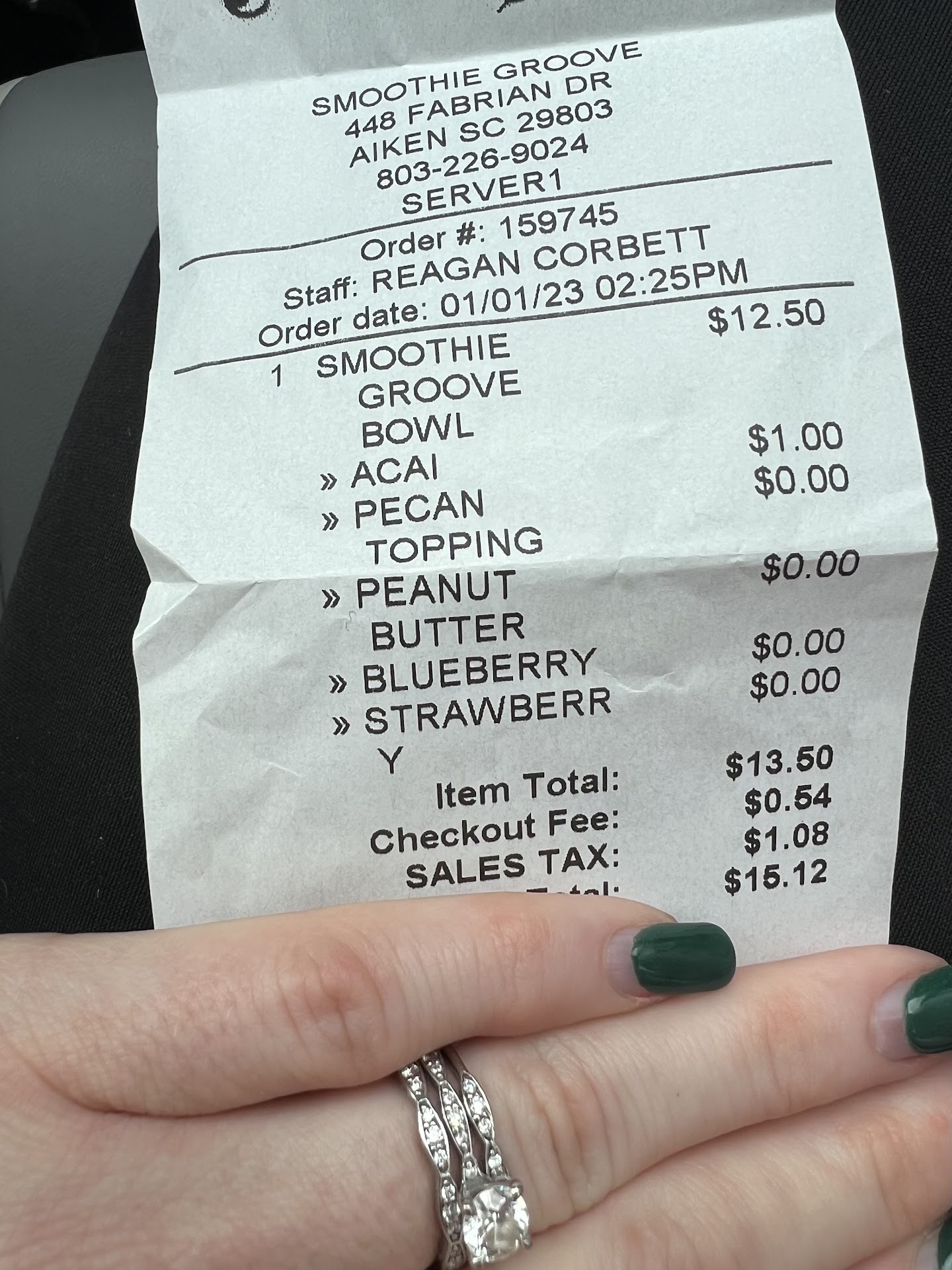 Ā Ā Ā Read moreWas very excited for a place to open up in Aiken with aƧaĆ bowls but was quickly disappointed after paying $15.12 for the smallest smoothie bowl I have ever ordered. Iāve ordered aƧaĆ bowls in airports, NY, AZ, and CT that cost this much and were three times the size. Not to mention the taste left much to be desired. Also be aware this location charges a credit card fee and has signs stating āall sales finalā which shouldāve been a red flag to begin with. Do yourself a favor and DO NOT spend...