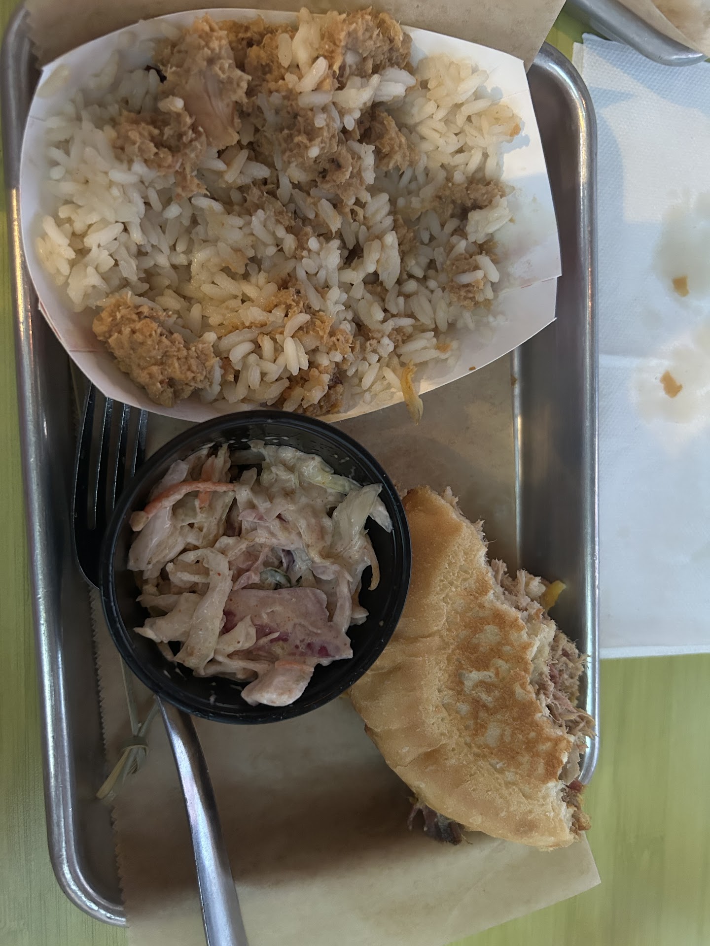 Read moreWe were so excited to try this Smokehouse! We sat on the back patio and loved the vibe. Our server was less than friendly; he seemed generally annoyed by our presence or maybe that was just his demeanor. He barely spoke to us, vaped behind the bar, spilled one of our drinks as he handed it to us and just left it on the table with no napkins in sight. He came over as few times as possible. The mixed drinks were yummy, thankfully. The food was NOT. Pulled pork tasted like vinegar. The smoked chicken was rubbery and seemed reminiscent of cheap rotisserie chicken from any run of the mill grocery store with zero smoked flavor. The mac and cheese was fine and the only thing I ate on my plate. The shrimp tacos were very fishy with little other flavor. Our kids got chicken strips which were the only things served hot and tasted fine. The server did not at all care that our food was left uneaten, nor asked us how anything was. I did tell him the chicken was not very good, with no response from him. There is potential for this place to be amazing with the location and the setup but it was just...