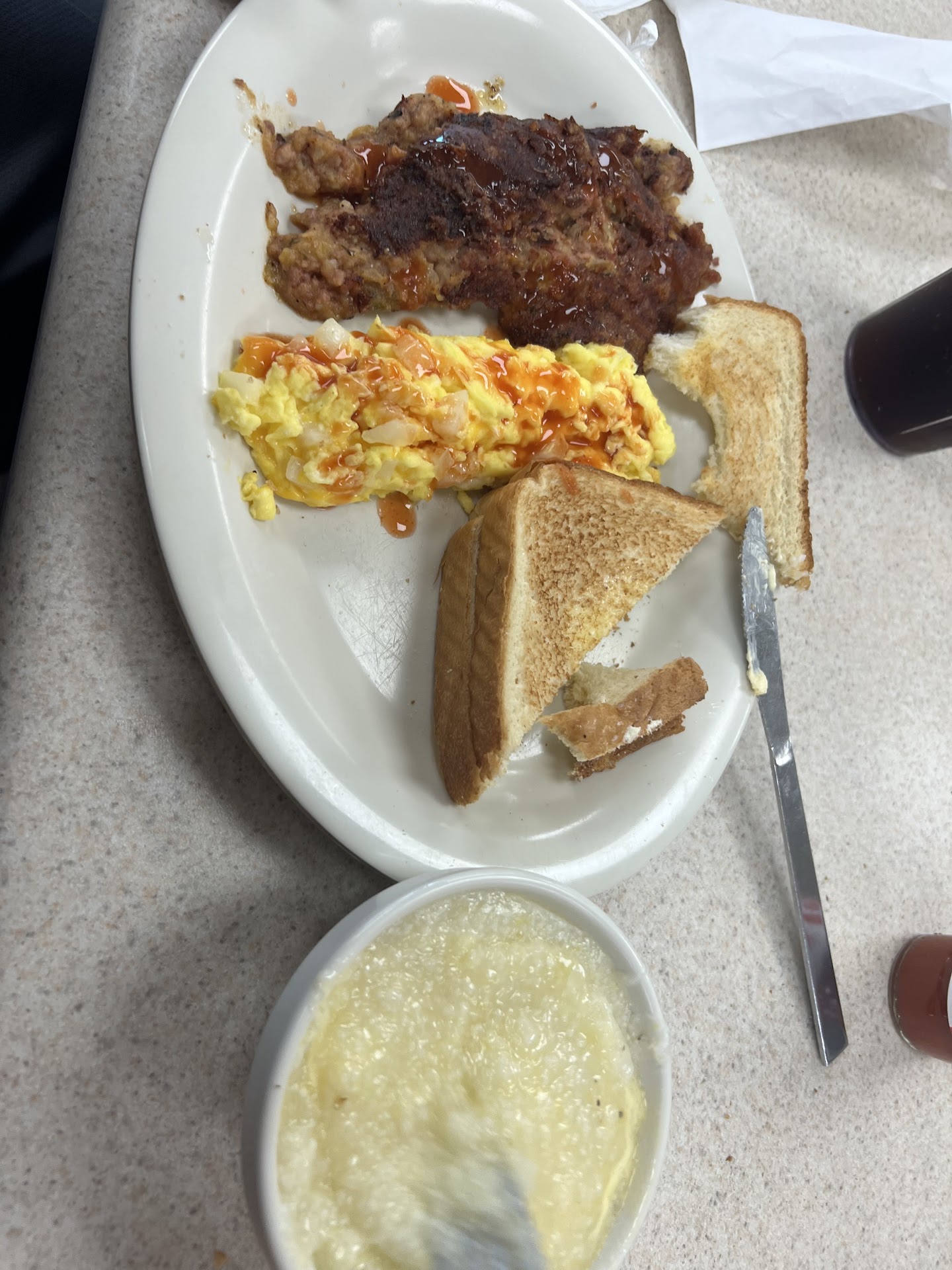 Read moreThe menu is very hit and miss. Gave them two tries and was not overall impressed. Waffles were good, but blueberries on top were rancid. Breakfast sandwich and corned beef hash also good. Country fried steak was ok, but was a little thin and lacked seasoning and was overbreaded. Went the other day and tried the "chicken salad" sandwich, but that couldn't have been further from what it was. It was HUGE pieces of dry chicken smothered in watery mayo with no flavor. It was terrible. The only redeeming factor was the potato salad, which I suspect may have also gone a bit sour. Some things are ok, but with it being so varied, I won't be going again. The service is good, but I always hear lots of apologies from the waitresses visiting tables around me. I'm guessing the kitchen staff is a big problem. Also, their music in the back is loud and just terrible music. I would rather go to a chain like waffle house because at least the quality and consistency are almost always spot on and I have been going my entire life. My advice: avoid this place or get the most basic things on the menu, skip the lunch items, and avoid the fresher items like fruit. I'm guessing this place either has fake good reviews or the folks of this area really don't know what...