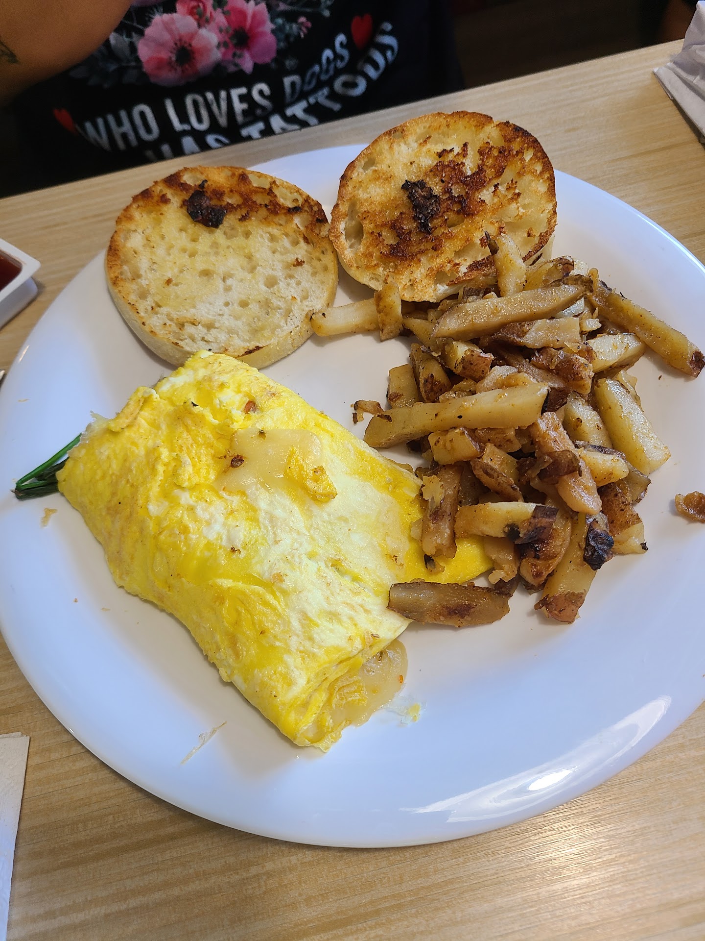 We had just gotten into town for work... only to discover our apartment wasn't the one we'd been told. We stuck a key into a stranger's door! We were embarrassed, annoyed, and HUNGRY. My bf had noticed The Flippin' Egg on our way through town and is a large fan of breakfast food. I didn't care where we went.. I was just ready to be finished hearing a grumpy teenager talking about how wherever we went, she was going to sit in the truck. I was NOT in the best mood when I walked through those doors... But something changed about that, and I didn't even realize until we had our food in front of us. The atmosphere. The staff. Even the other customers. Everything about our experience here was softly cheerful, charming, and relaxing. To be honest, I don't remember what I had or how good it was. This happened about a month ago. What I do remember is how much better I felt from start to finish of my experience, and that I was happy to have leftovers the next day. I highly recommend this place.