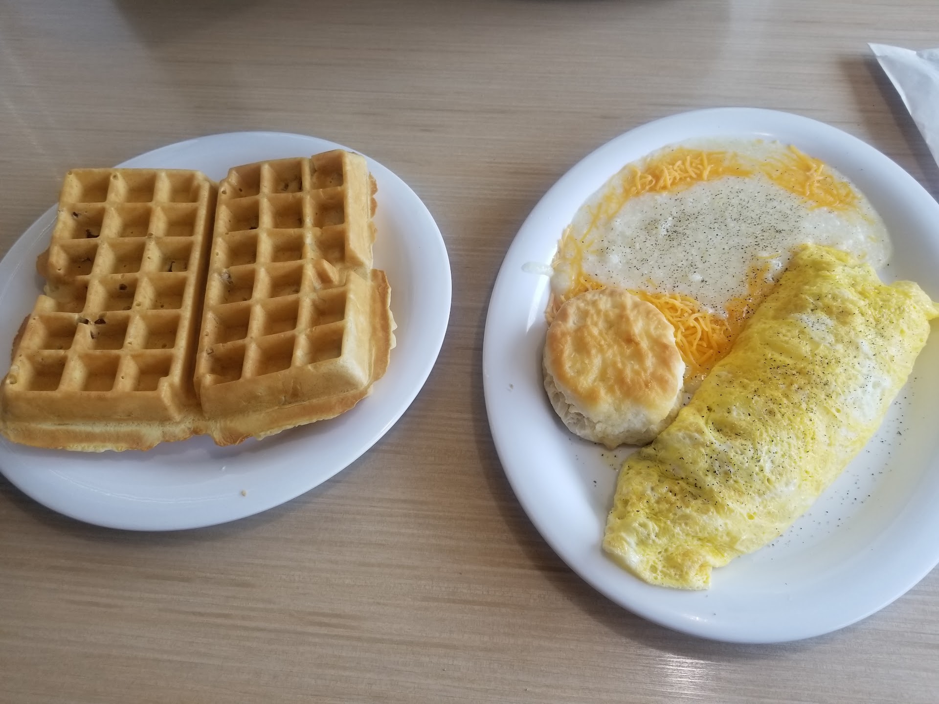 Read moreIf I could give them a zero I would! This was the worst breakfast I've ever had at an establishment. I ordered a make it your way omelet with whole wheat toast and cheesy grits. The toast was hrs before turning moldy, had a bad and very dry stale taste to it with very little butter. Omelet had mushrooms, onions and peppers, and pepper jack cheese.....most bland flavor ever and the cheesy grits with extra sharp cheddar cheese was made with yellow sliced American cheese. Grits had no flavor and were under cooked and made me cough terribly. The only bright spot was my waitress Alex! A very beautiful woman that was an extremely attentive fast waitress. It's close to the hospital and that's why I chose to eat there,but it's definitely not worth the stop and a total waste of time and money!! If you pay by card you'll be charged extra for that luxury, lol!...