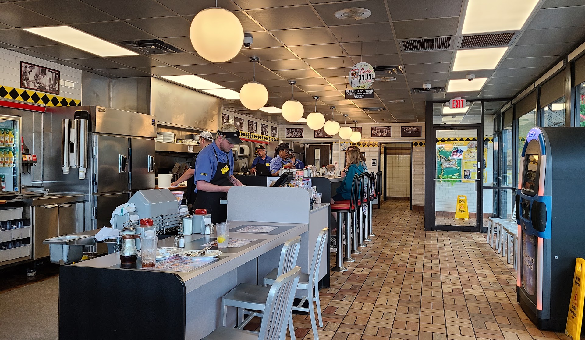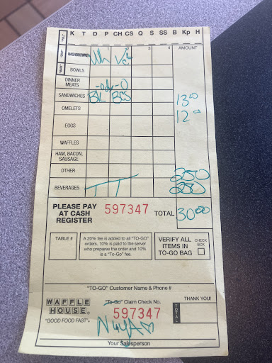 Everything was as usual for Waffle House, always enjoy an All Star Breakfast. Except our server in particular, very lazy, and he scrapped his arm over my straw after I had to wait a long time for him to bring so now another wait for the replacement, and our drinks didn’t get brought to the table until the first plates of food were brought. He didn’t bring things to us, had to ask other server for refill and when I ask her to tell him we needed one she said not gonna tell him anything and got the refill herself. When we were done we had to ask for the tickets & he literally wrote them then laid them on the counter in front of him & said her you go. So we had to get up to even get them. You could tell by the way the other servers were with him he didn’t do the work he needed to be doing then as we were waiting to check out he went to our table looked at it but didn’t pick anything up then came back to the register as if he was looking for his tip money. I have never not tipped someone but that happened this visit. He did nothing worth receiving one. Hopefully for the other servers sake he isn’t there very long because he didn’t nothing but get...