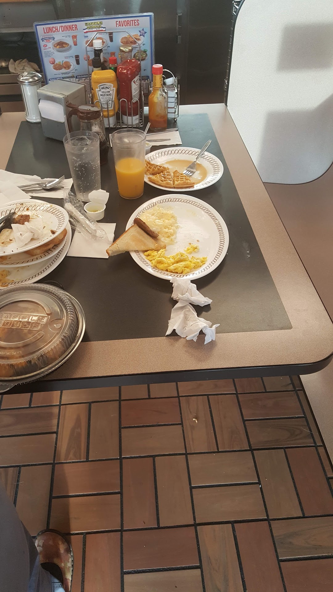 Upon arrival, the restaurant wasn't busy. We were able to come in and sit right away. We were the only customers our waiter had. She took our order and brought our drinks right away. As the food came to the table, our seven-year-old ordered bacon and a waffle. The bacon arrived after our meal, and her waffle arrived 15 minutes after everyone else's food. The cook made himself a sandwich and went to the back to eat while our waiter ran around, filling condiment containers instead of getting our daughter's waffle to the table. Upon arrival, both orders of bacon were poorly cooked. Once the waffle finally arrived, it was overcooked and dry. I was upset about my daughter's simple order arriving so late and being poorly cooked. The waiter only offered to refill my tea while my son sat for half of our meal needing a refill. I had to ask for his drink to be refilled. We spent over $50 and won't be visiting this restaurant for a very long time. I am a very...