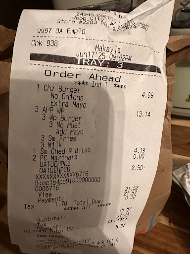Ā Ā Ā Read moreThe process started well. Until I noticed that a price was different on the screen than what was posted on the menu. When I pointed the difference out to the employee they said that they don't set the prices, the machine does. I know perfectly well that any price can be overridden and corrected. But I moved on. When we got our food they had forgotten, either intentionally or not, two sauces that we had ordered and they corrected that. We double checked the contents of our order and went home to eat it. One burger was not made to our specifications at all (it was the only one we customized). We ordered a number one with only cheese and ketchup. It had mayonaise, no cheese, and bacon on it. How?!? Is there QC at all? Does anyone watch these kids make the food? This isn't the first incident at this location, so we won't be giving them another chance...