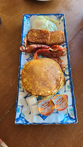 My companion tried the pancakes and eggs and was surprised to receive 3 eggs, 2 healthy-sized pancakes and 3 crisp pieces of bacon. Omelettes and other items are also on the menu.