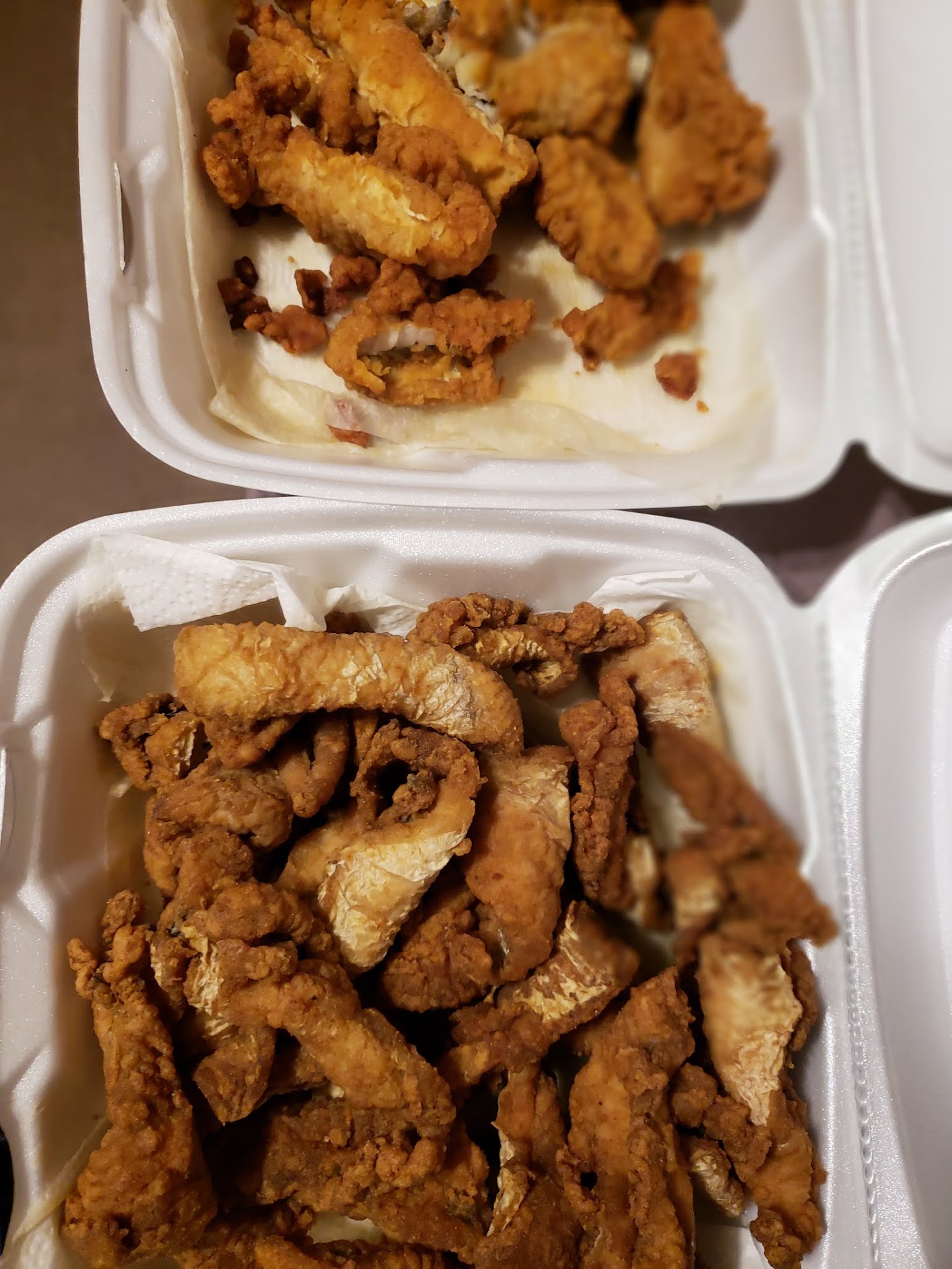 We purchased the catfish nuggets, that actually were more like strips. The first time, there was barely any seasoning on them. The second time, we asked for them to be cooked crispy since they were soft underneath. This was not done, and there was less seasoning than the first time. We went back a third time within the month to give it one last shot since we heard good things about the restaurant. Unfortunately, this time was the worst. The fish had some kind of white coating on parts of it that made it look completely unappealing. Also, the batter between the two orders was markedly different in color and taste (zero taste). Both orders were not cooked crispy. When I called and spoke to someone there, he just made excuses as to why it would not stay crispy, and basically told me that, "He is sorry, but if people want it cooked crispy, then we need to do it ourselves." Terrible customer service and lack of appreciation for customers. Well, thank you sir, I will definitely take you up on that recommendation. If you like soft under cooked fish with no taste, Klein's Seafood...
