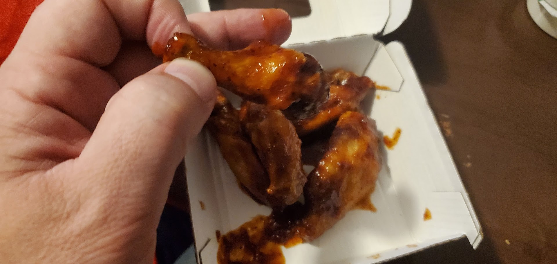 Read moreWe ordered this food to go on a weekday just wanted something different. I tried to get the orange chicken boneless wings, which were not tossed and sauce but instead sauce poured on the bottom of my container and they just threw regular nuggets on top. My fries were not hot. They were OK, but they were not hot. They didnât have a drink that I wanted. I wonât say the service was bad or good. It was just mediocre only because I was picking up my order and then it was probably a hour before them closing so really nobody was in there, but the establishment was clean. Iâve never had Buffalo wild wings before and with this experience I see why Iâm not really too big of a fan. I asked for carrots on the side with blue cheese and ranch dressing, the carrots were slimy and they gave me a half a teaspoon of blue cheese, which was ridiculous. Also, the ranch was kind of water down so I just wasnât wild about my experience and know there arenât any pictures because this was takeout and it was to go. Iâm just giving my...