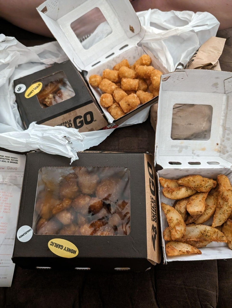 The food itself was as one would get at any other Buffalo wild wings. I ordered the cauliflower wings with the garlic parmesan sauce. It was tasty and cooked to perfection.